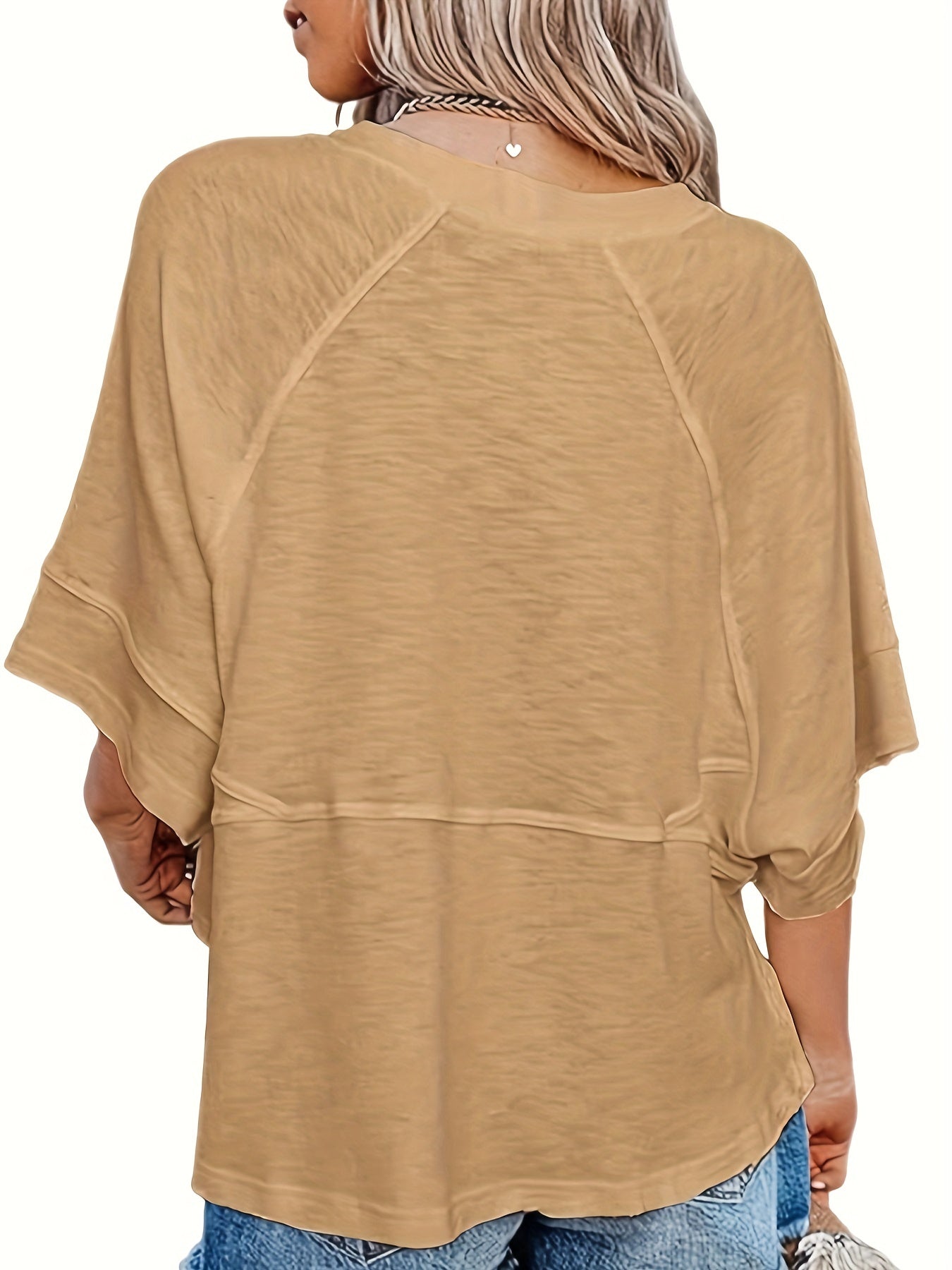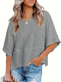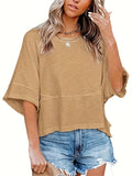 Solid Crew Neck Loose Basic T-shirt, Casual Half Sleeve T-Shirt