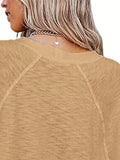 Sale Striped Botton Crew Neck T-Shirt, Elegant Long Sleeve T-Shirt