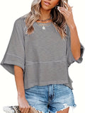 Solid Crew Neck Loose Basic T-shirt, Casual Half Sleeve T-Shirt