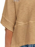 Sale Solid Simple Knit Sweater, Casual Crew Neck 3/4 Sleeve Sweater