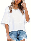Sale Solid Crew Neck Loose Basic T-shirt, Casual Half Sleeve T-Shirt