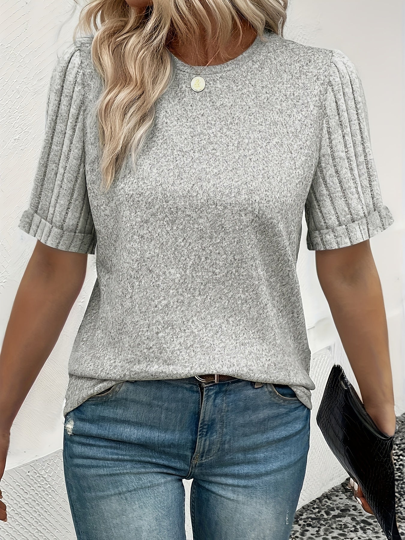 Solid Crew Neck T-shirt, Elegant Short Sleeve Top