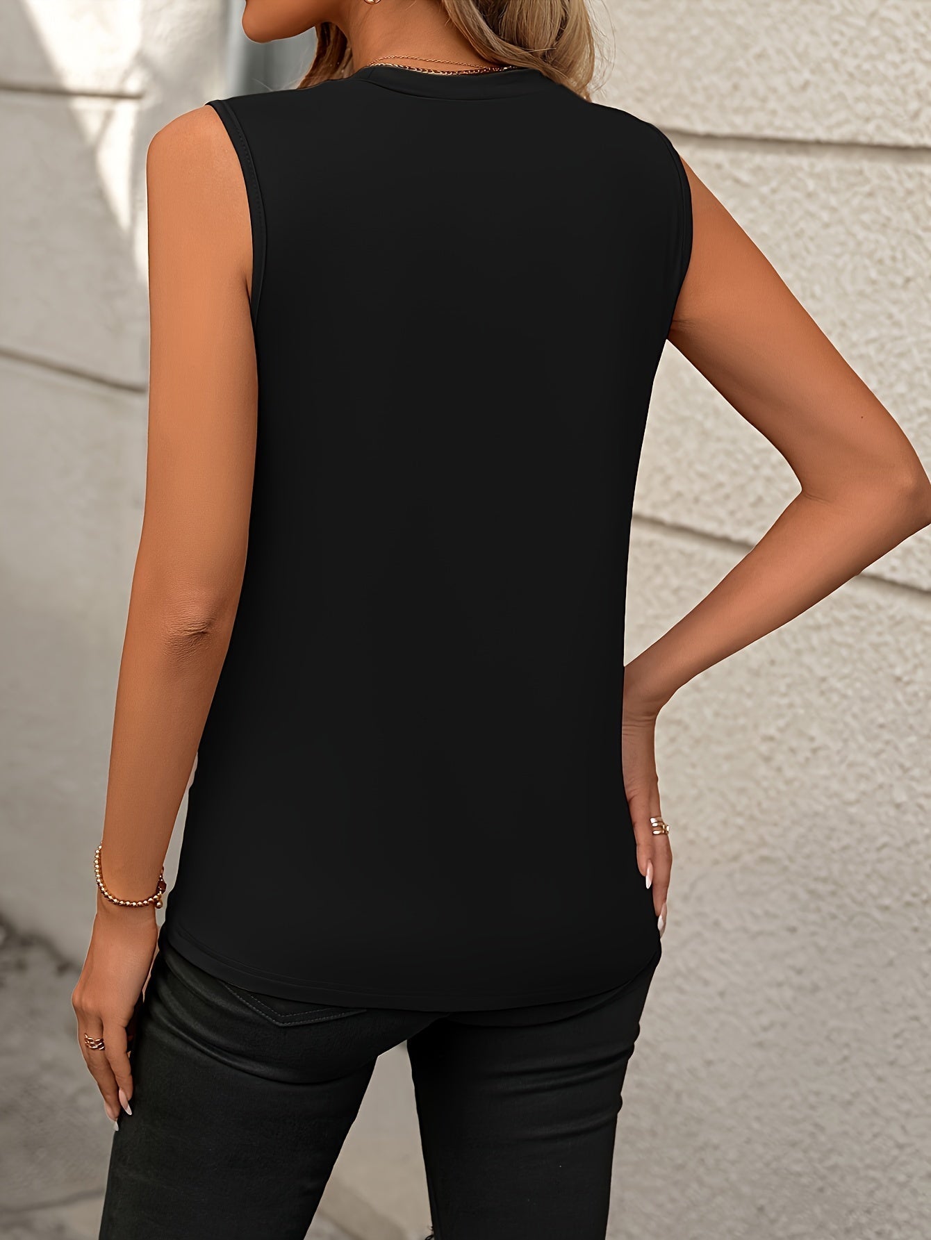 Solid Crew Neck Tank Top, Casual Sleeveless Top