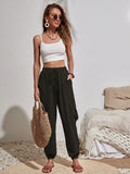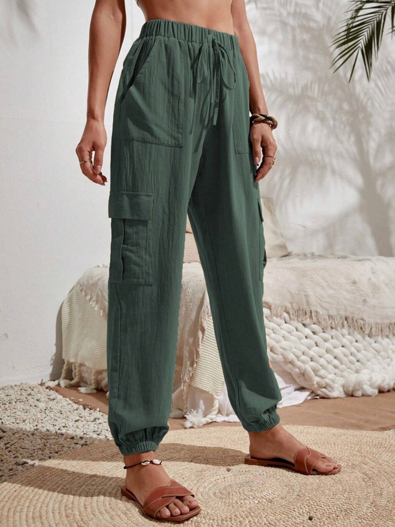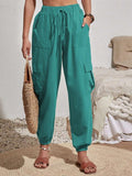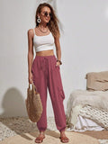 Solid Drawstring Pants, Casual Slant Pockets Cargo Pants
