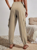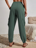 Sale Black Elastic High Waist Pocketed Cargo Jogger Pants
