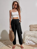 Sale Women's Loose Fit Wide-Leg Trousers - Casual Solid Color Drawstring Design Fashion Pants