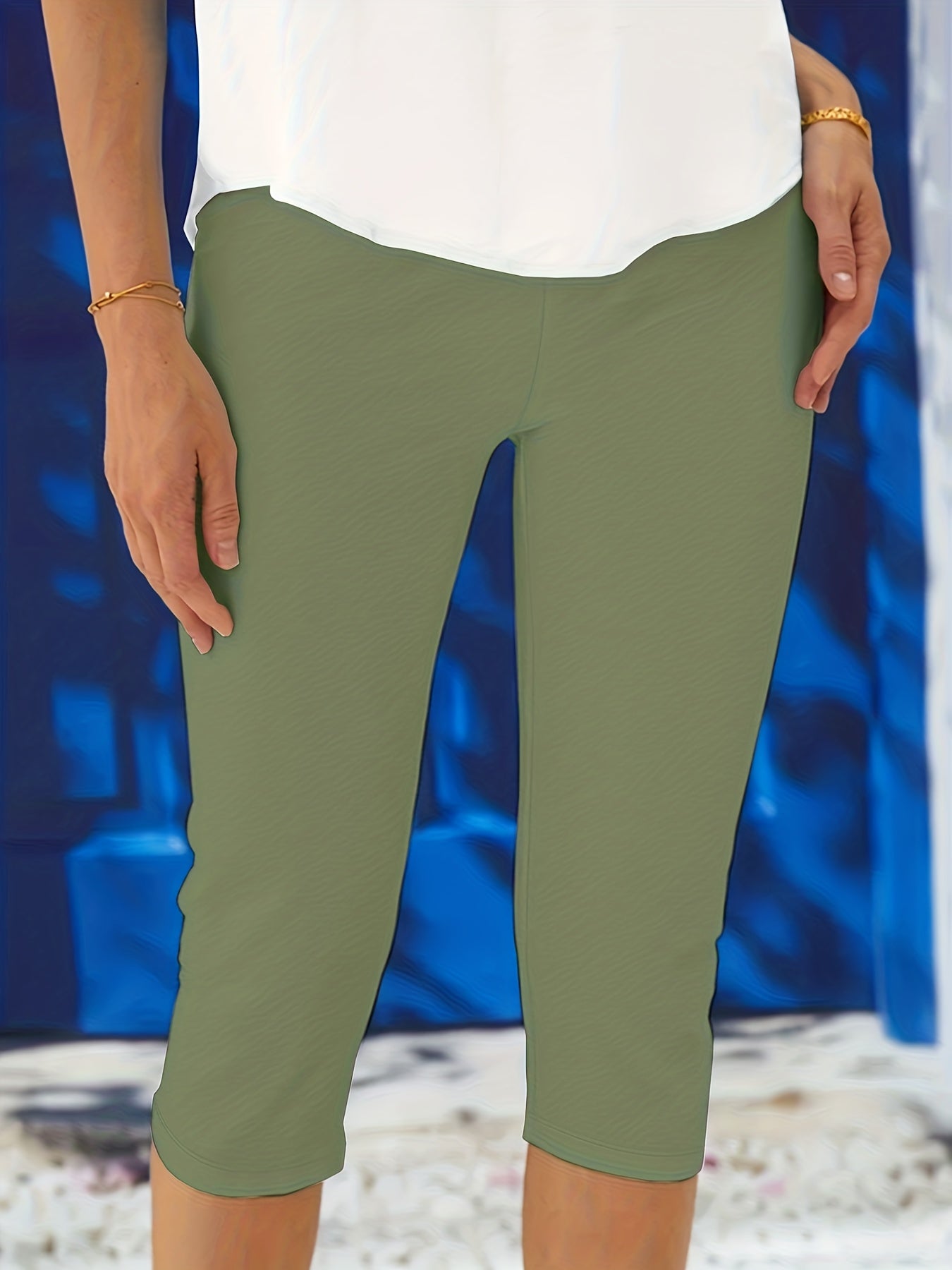 Solid Elastic Waist Medium Stretch Yoga Capri Leggings