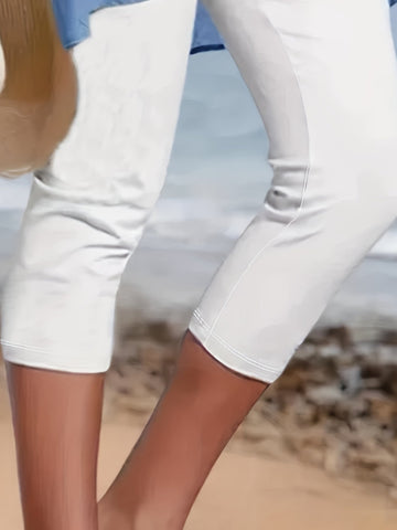 Sale Slim Crop Casual Tights Calf-Length Natural Plain Split Quick Dry Soft Chinos