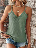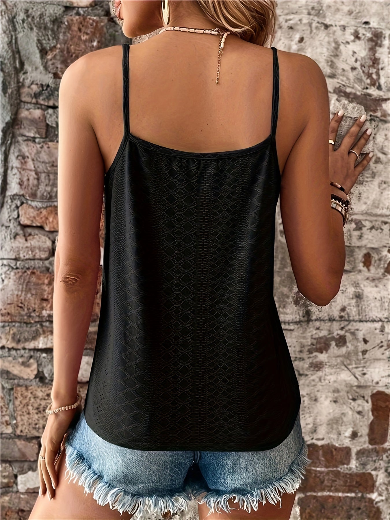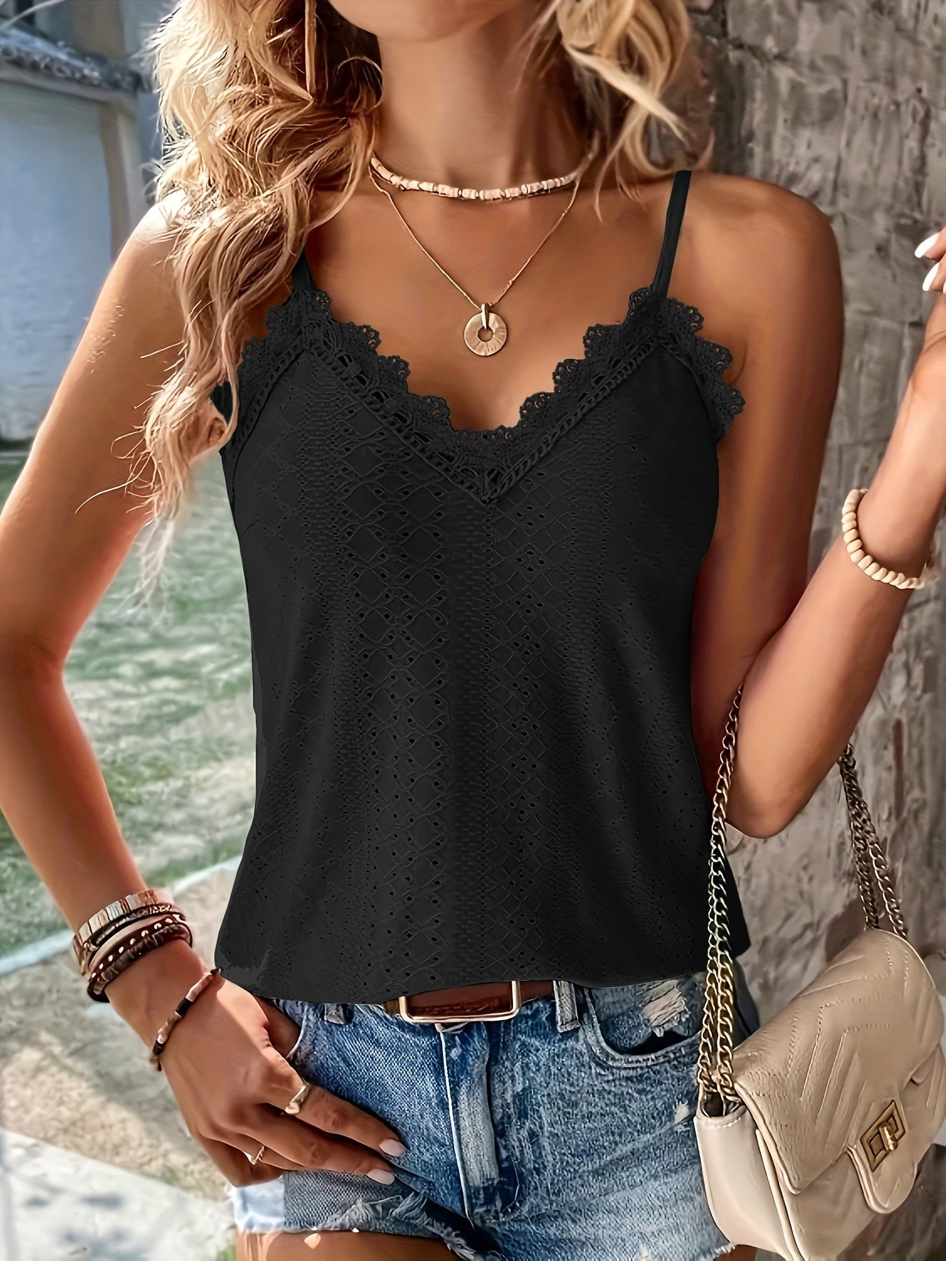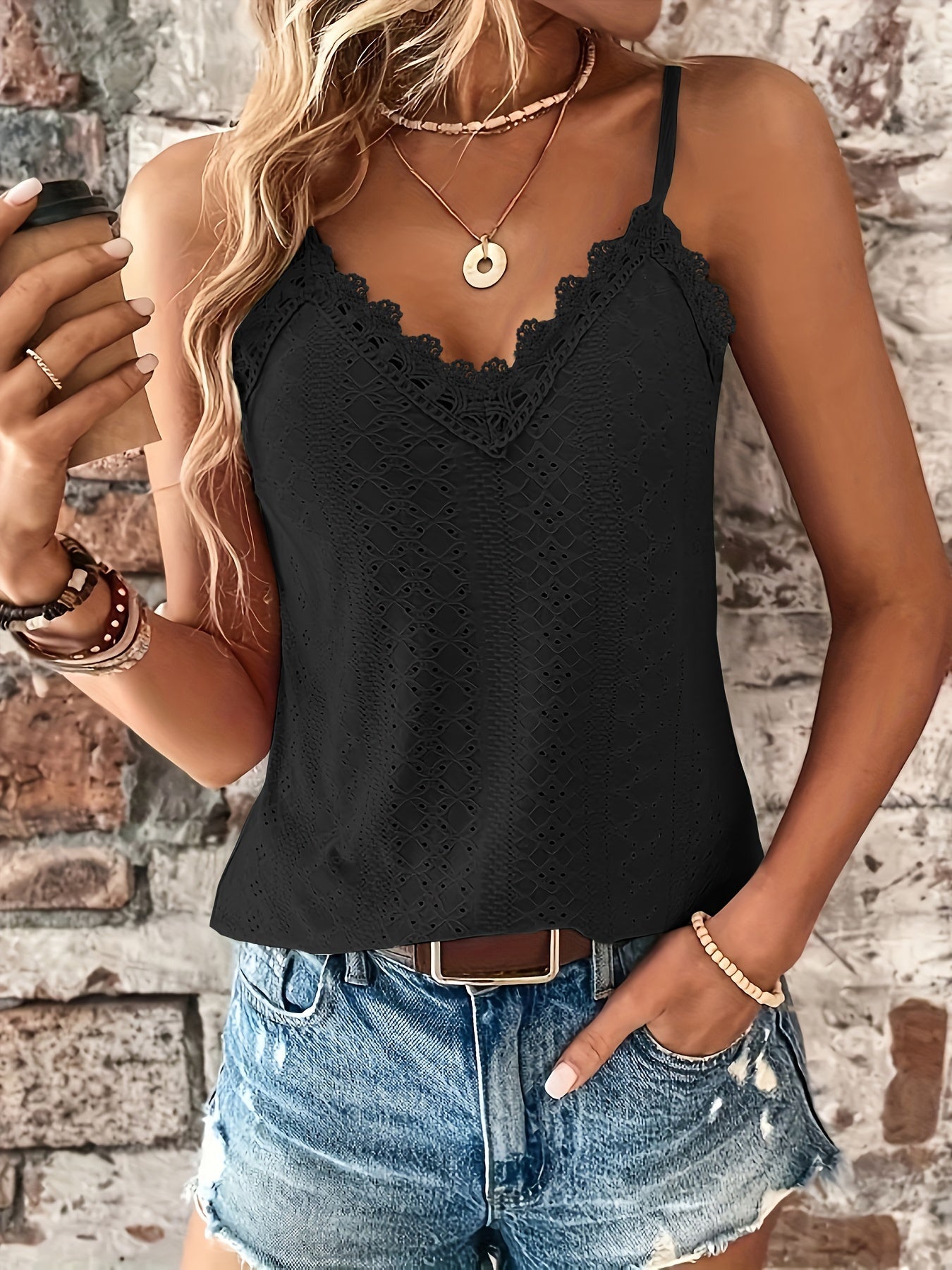 Solid Lace Stitching Eyelet Top, Vintage V-neck Sleeveless Cami Top