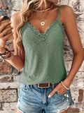 Sale Solid Lace Stitching Eyelet Top, Vintage V-neck Sleeveless Cami Top