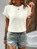 Sale Solid Lettuce Trim T-shirt, Casual Crew Neck Short Sleeve Summer T-shirt