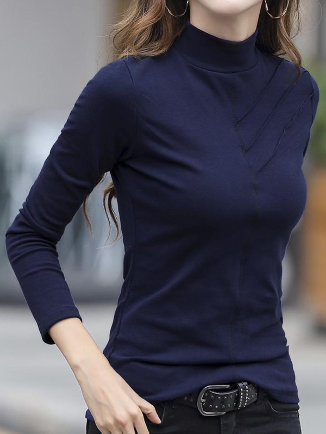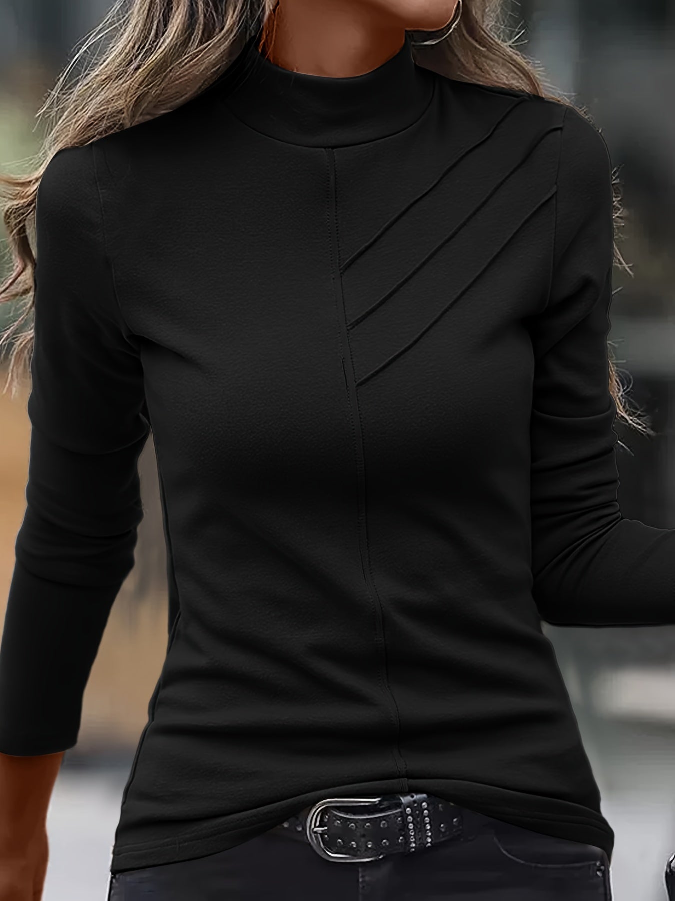 Sale Solid Mock Neck T-Shirt, Casual Long Sleeve Top