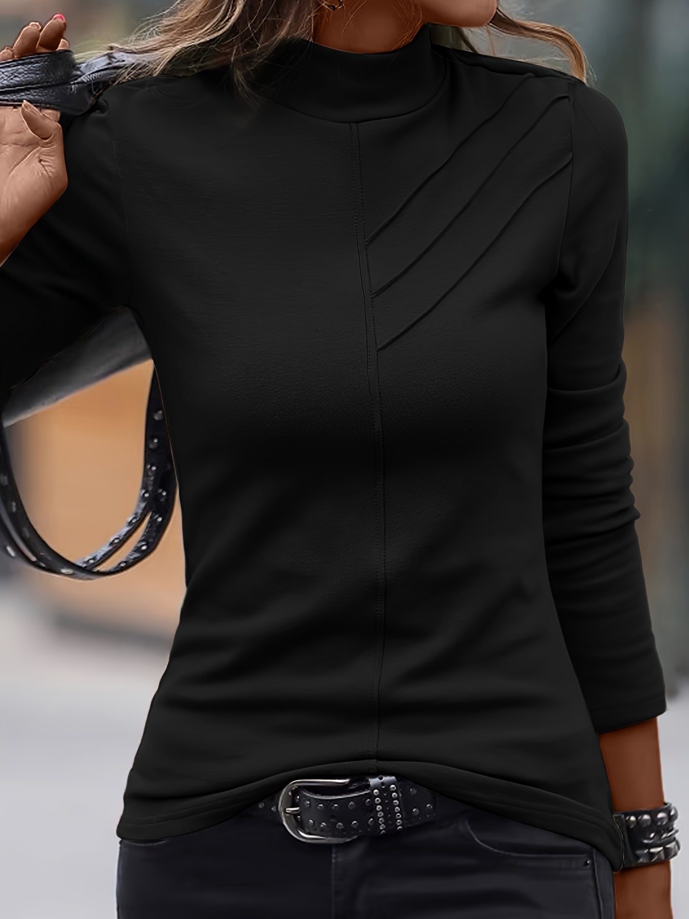 Solid Mock Neck T-Shirt, Casual Long Sleeve Top