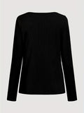 Solid Ribbed Zipper Front T-Shirt, Casual Long Sleeve T-Shirt