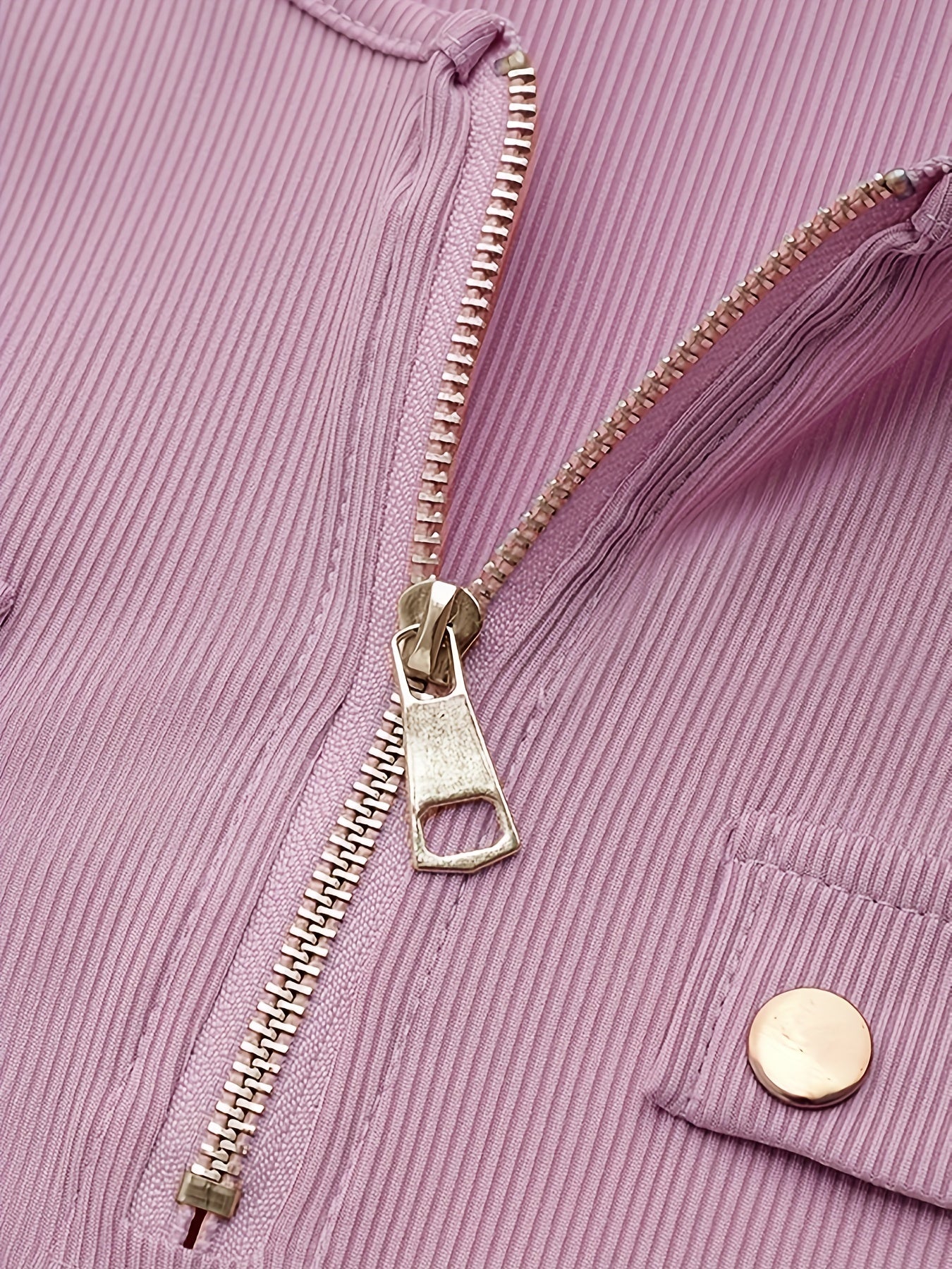 Sale Solid Ribbed Zipper Front T-Shirt, Casual Long Sleeve T-Shirt