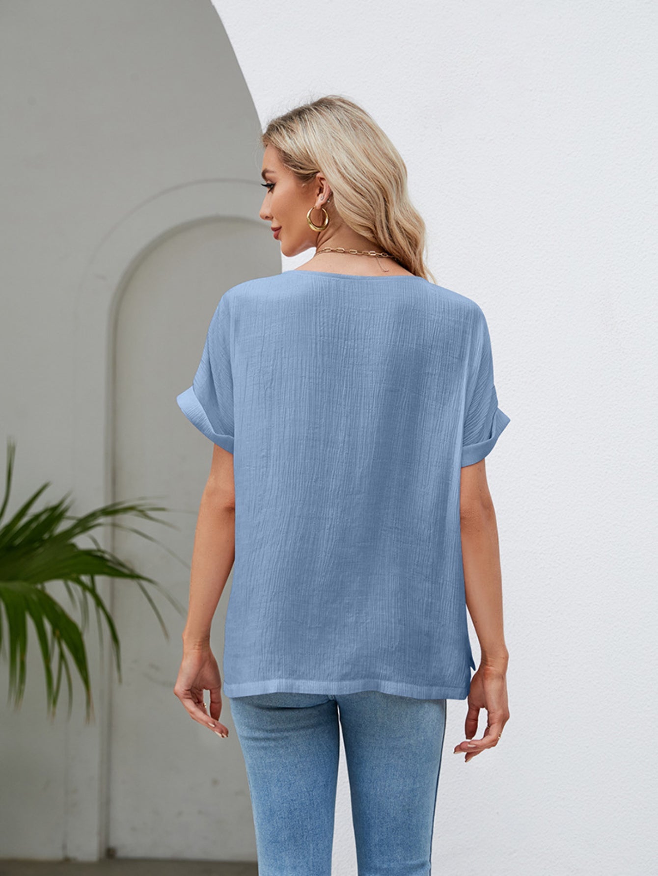 Sale Solid Rolled Short Sleeve T-Shirt, Casual Crew Neck T-Shirt