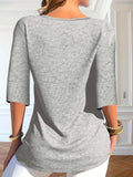 Solid Ruched Tie Front Top, Casual Three-quarter Sleeve Top