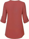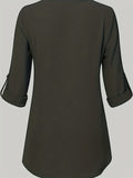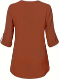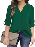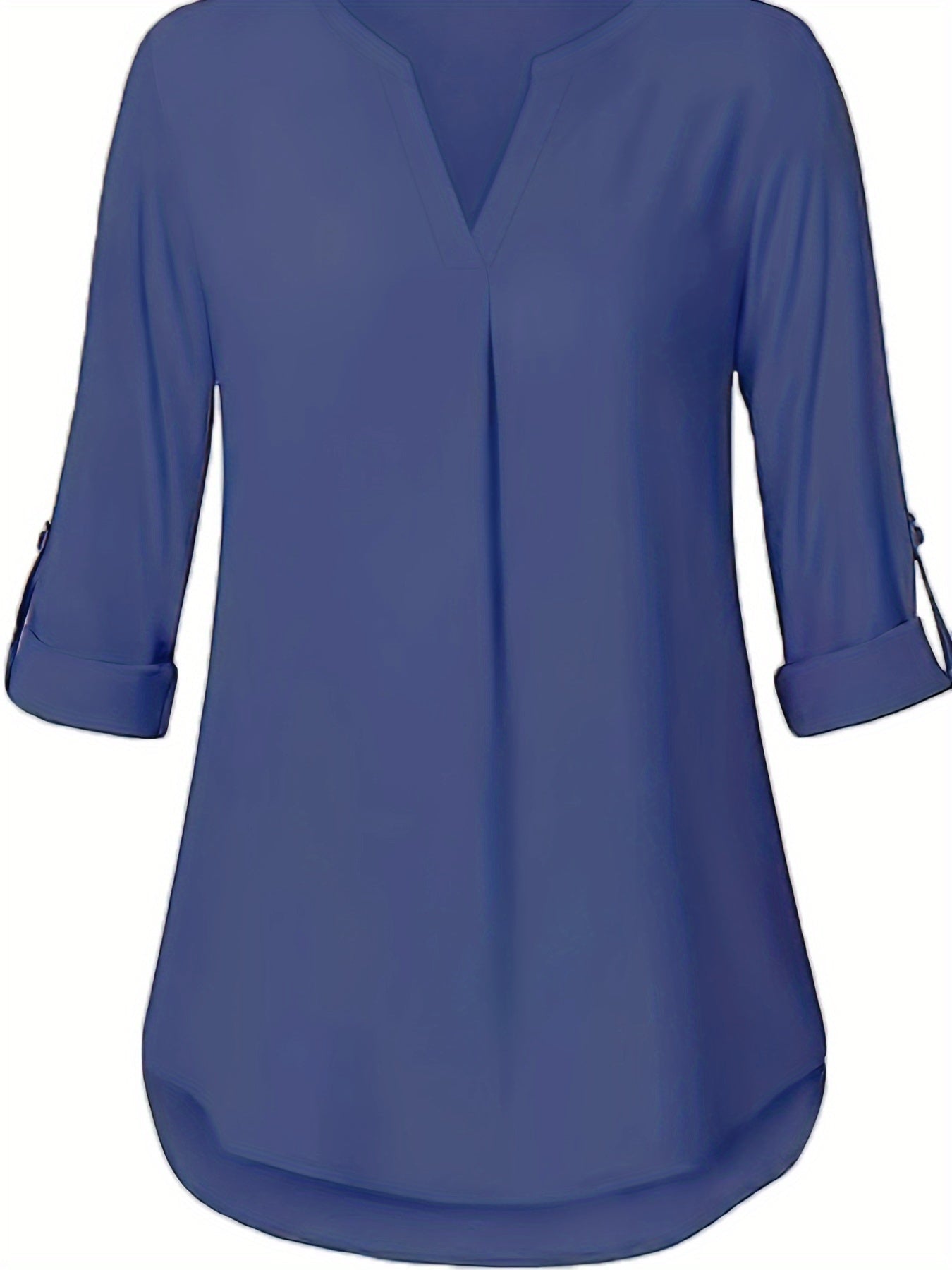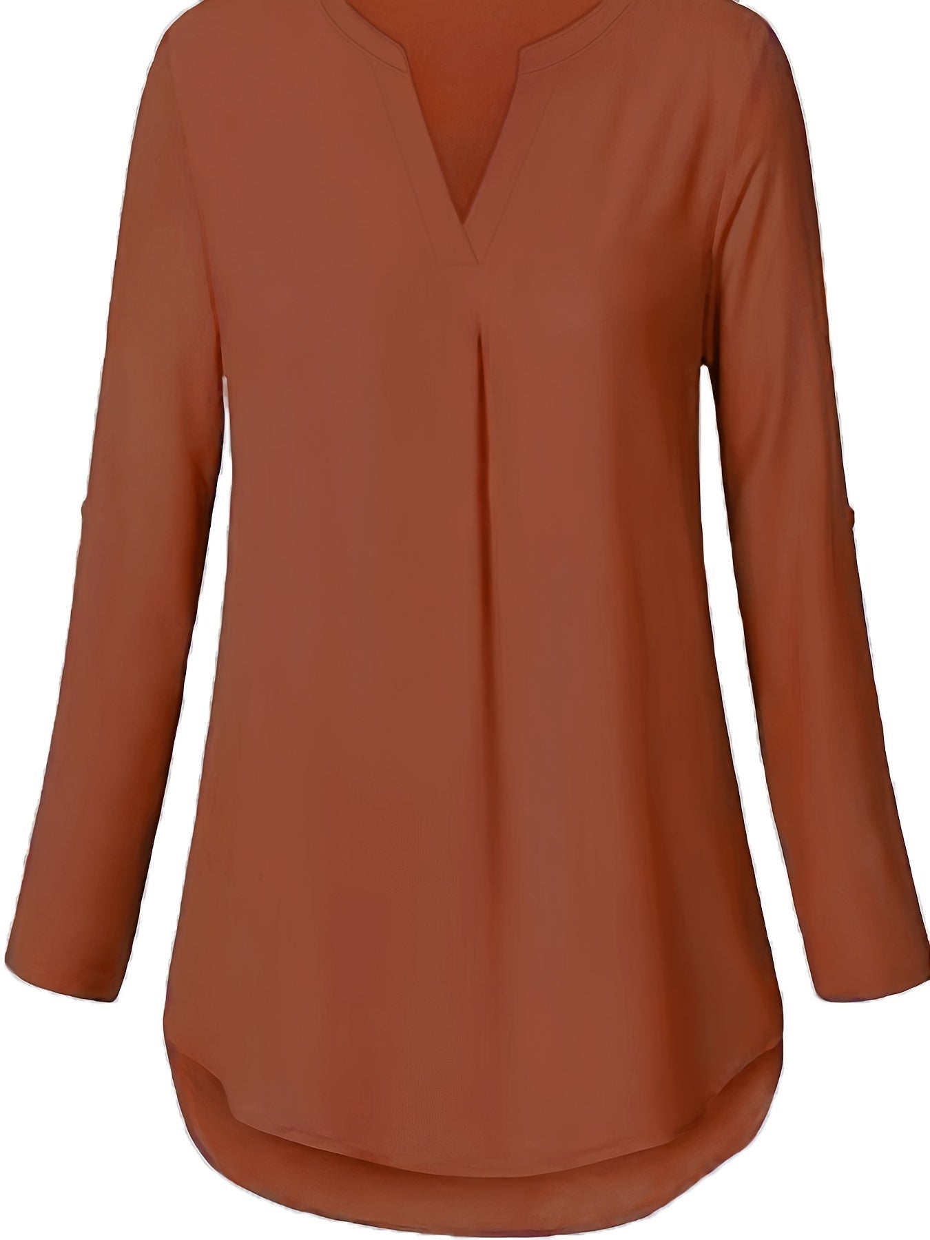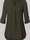 Sale Solid Simple Blouse, Casual V Neck Long Sleeve Blouse