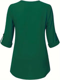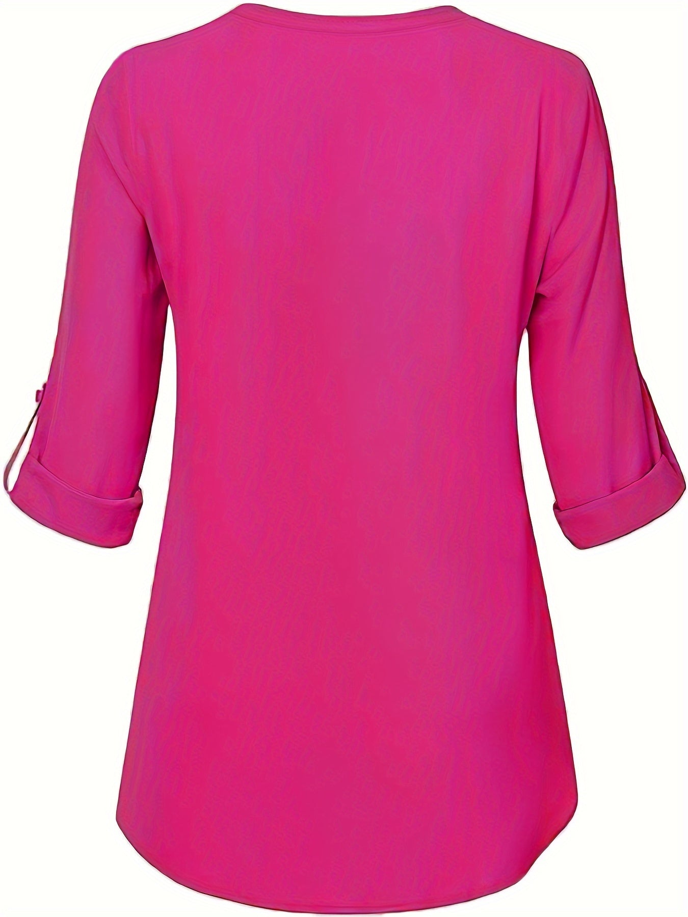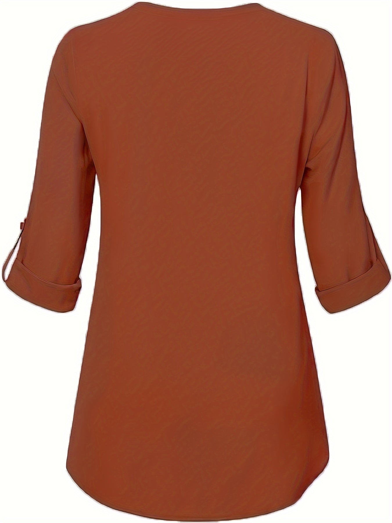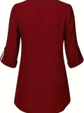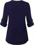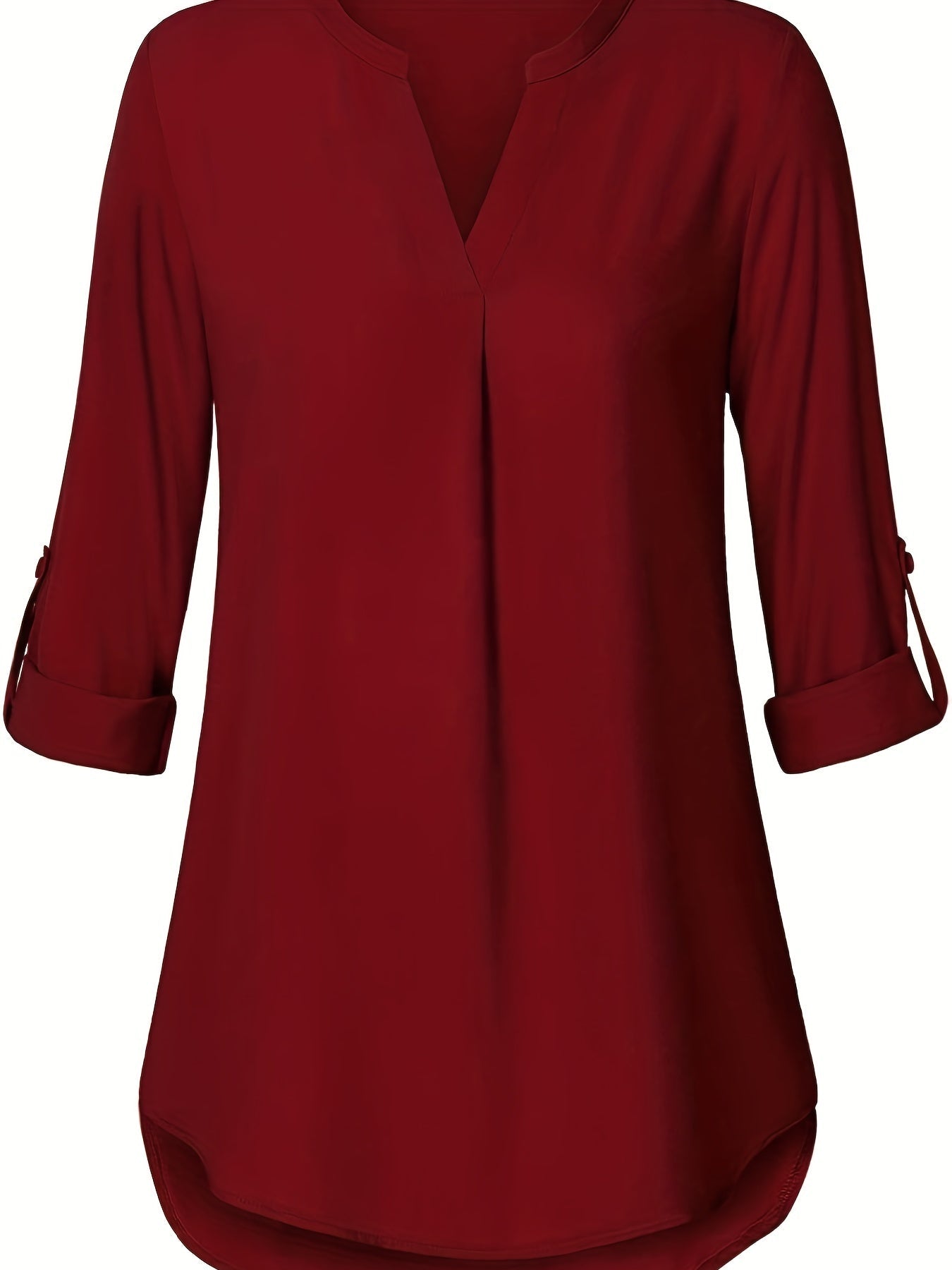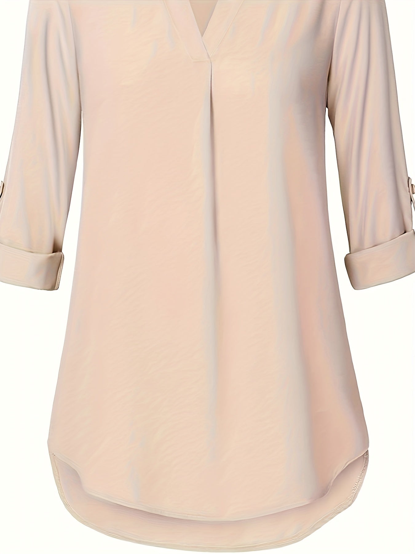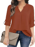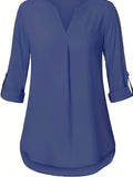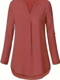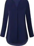 Solid Simple Blouse, Casual V Neck Long Sleeve Blouse