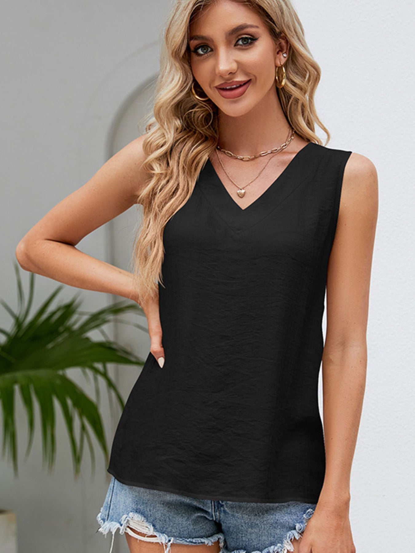 Solid Sleeveless Blouse, Casual V Neck Versatile Summer Tank Tops