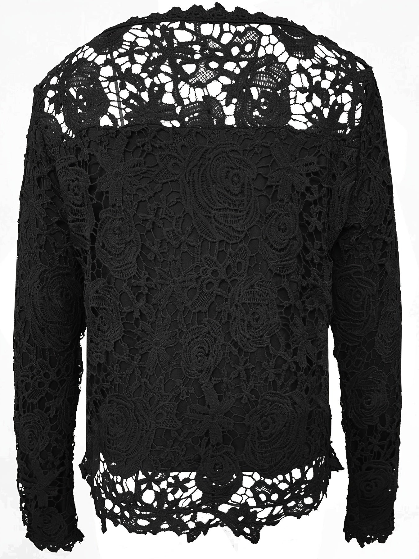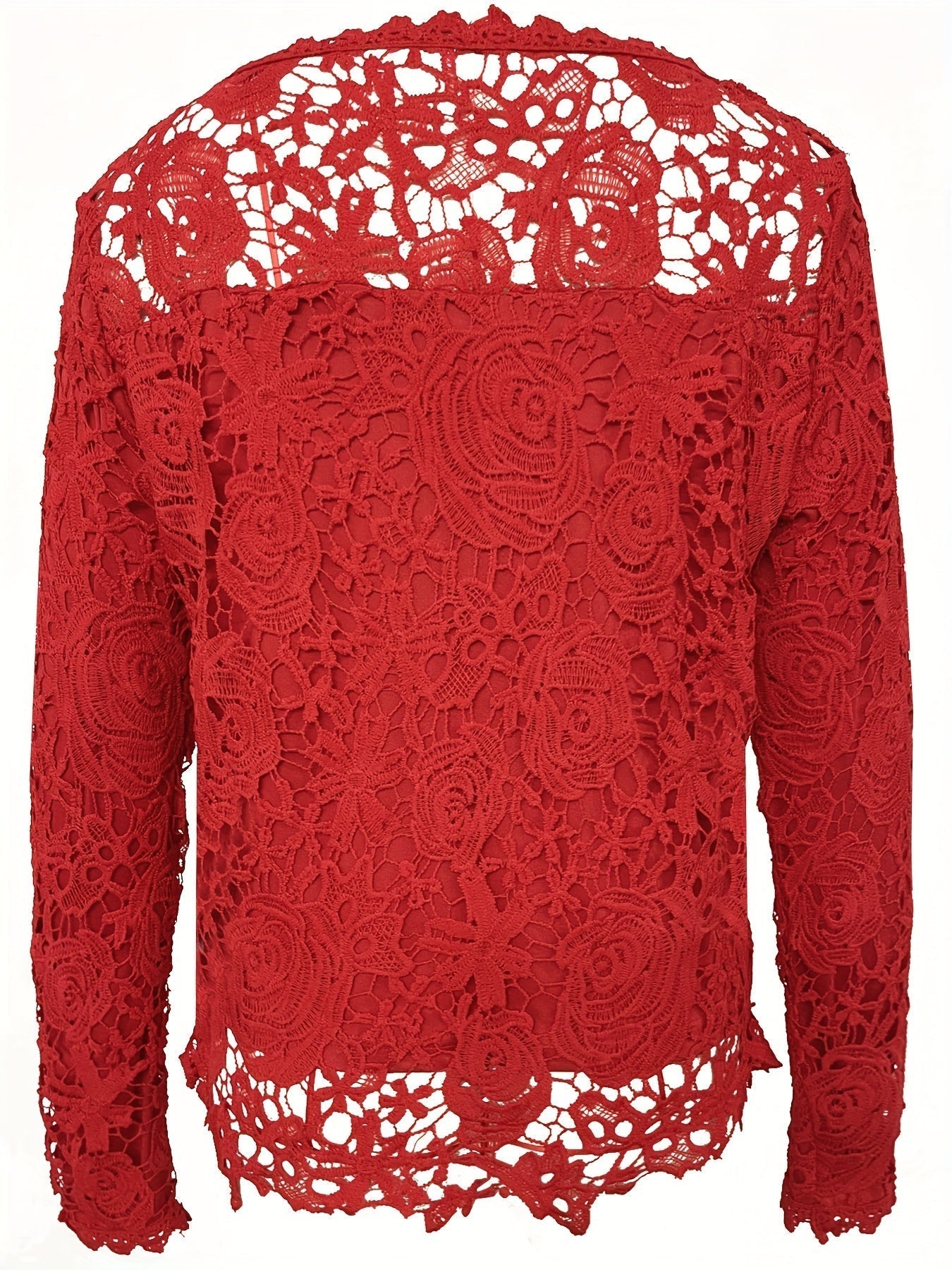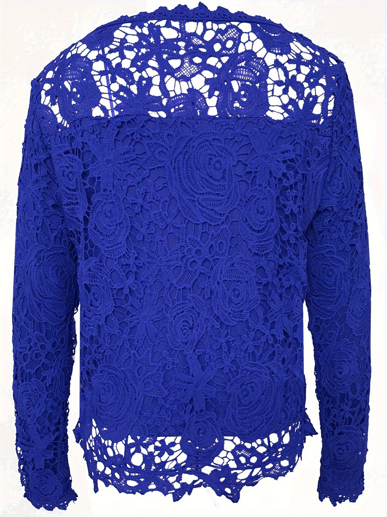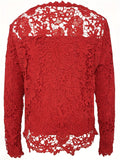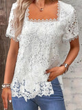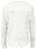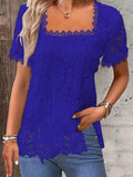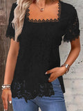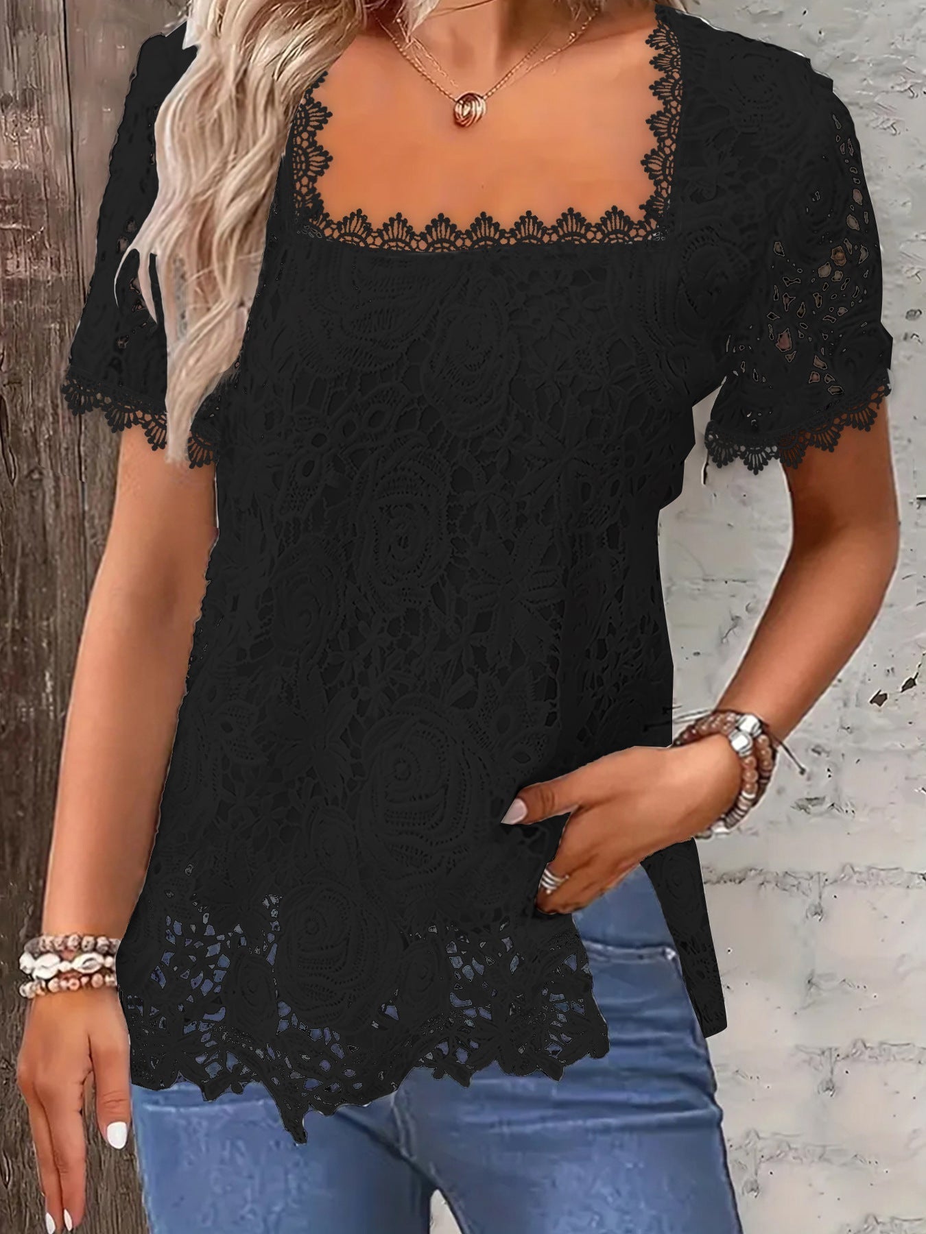 Sale Solid Square Neck Lace T-Shirt, Casual Long Sleeve T-Shirt