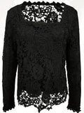 Sale Casual Contrast Lace Round Neck Long Sleeve T-Shirt