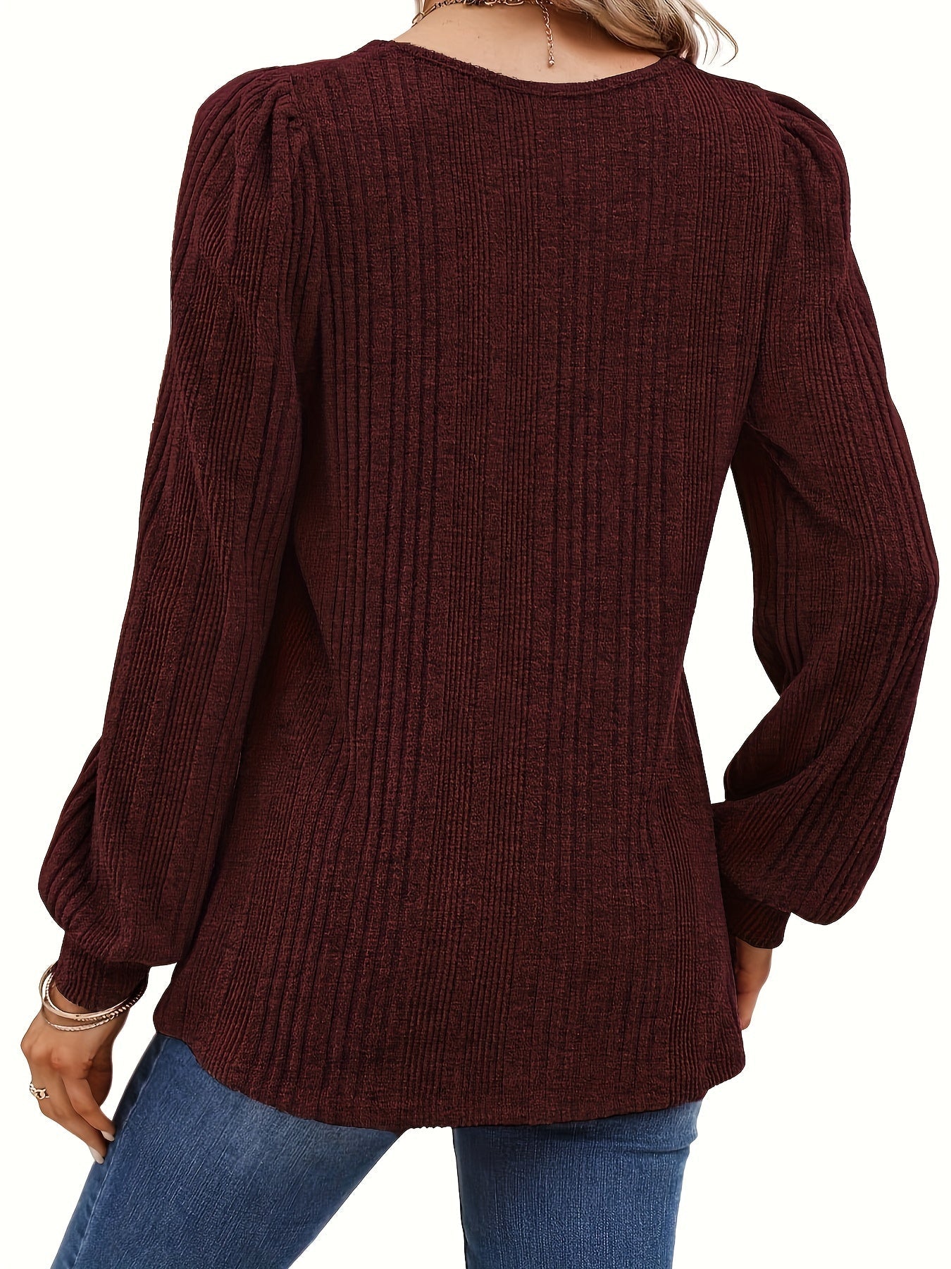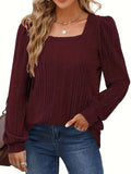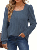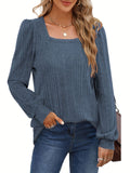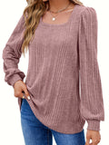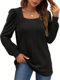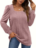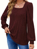 Solid Square Neck Rib Knit Top, Elegant Long Sleeve Sweater