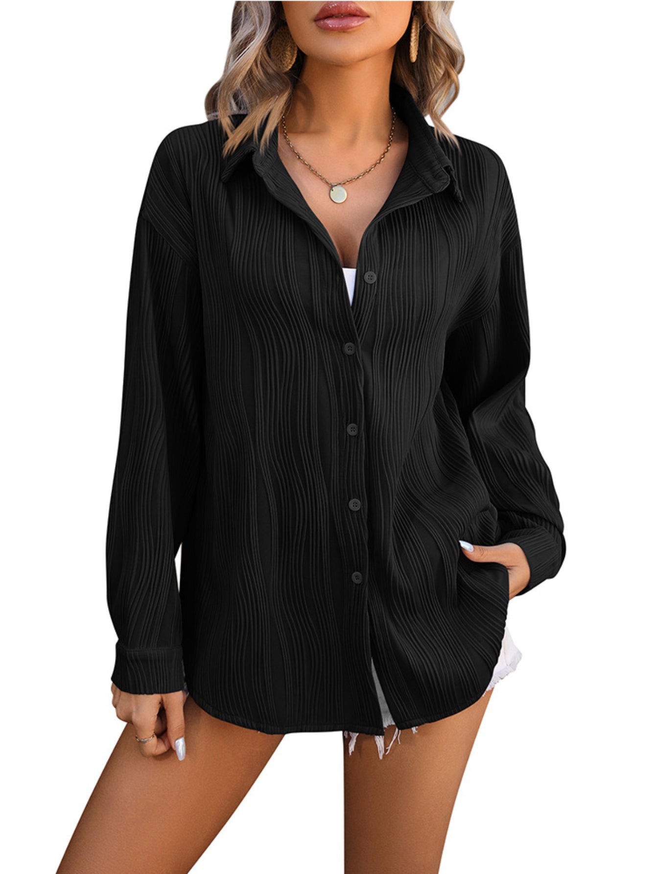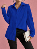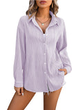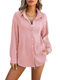 Solid Textured Button Front Shirt, Vintage Long Sleeve Shirt