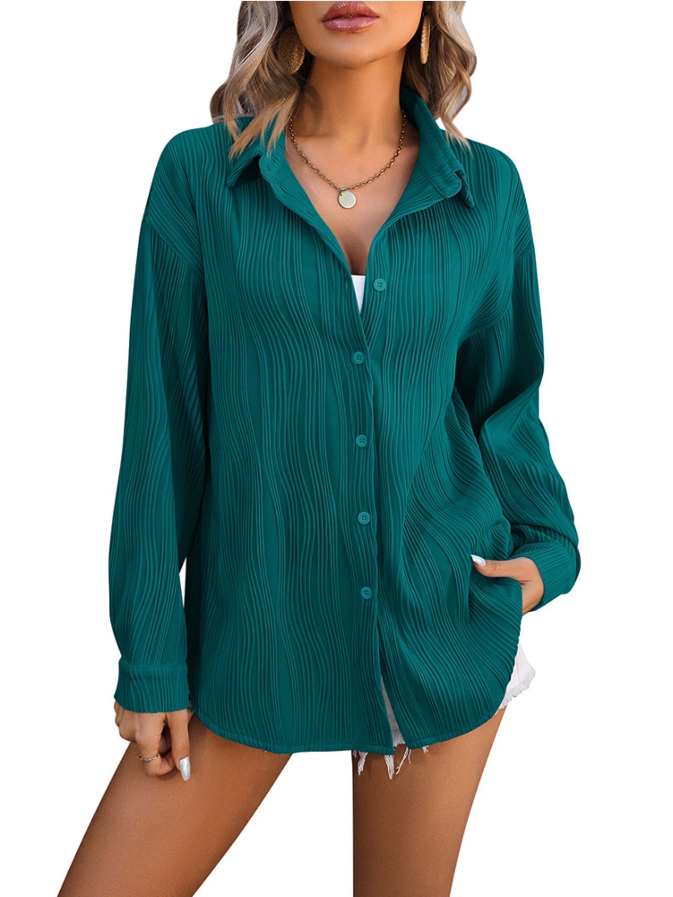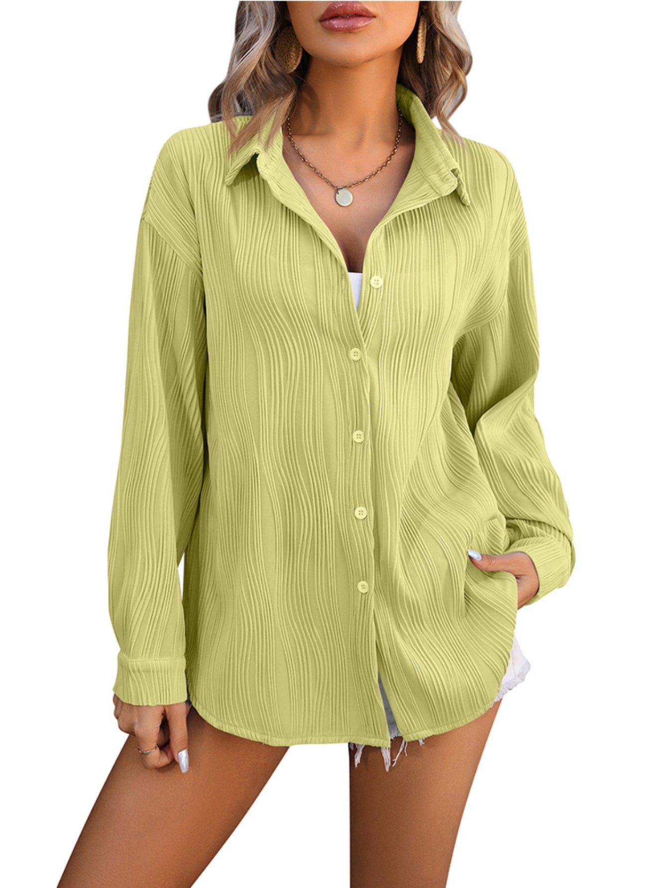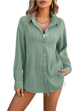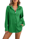 Sale Solid Textured Button Front Shirt, Vintage Long Sleeve Shirt