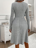 Square Neck Long Sleeve Dress with Pockets