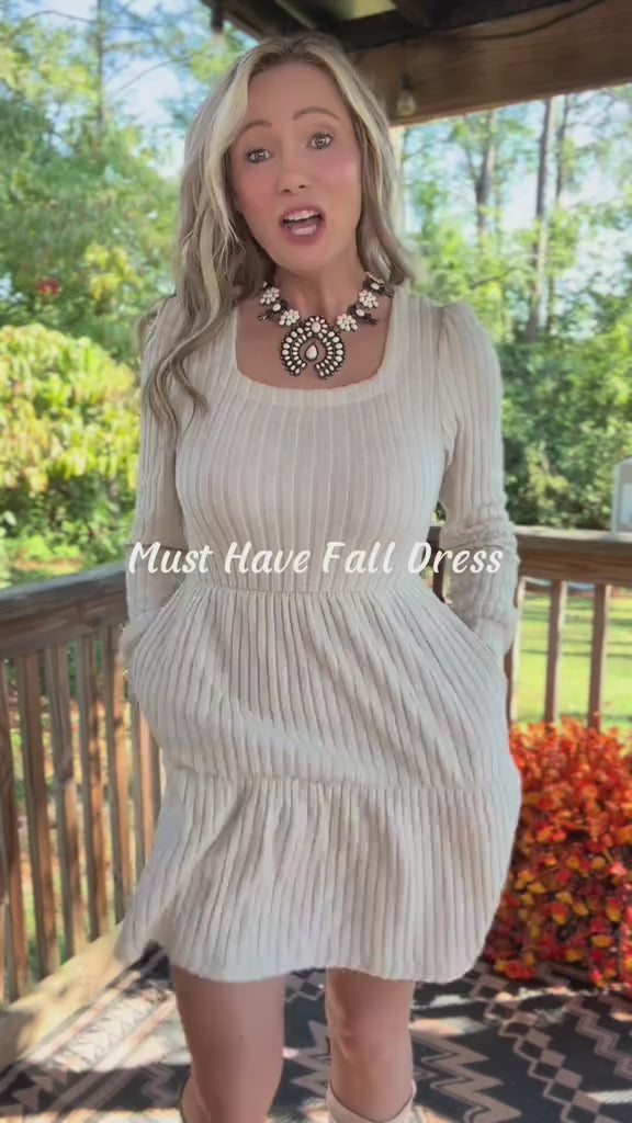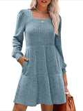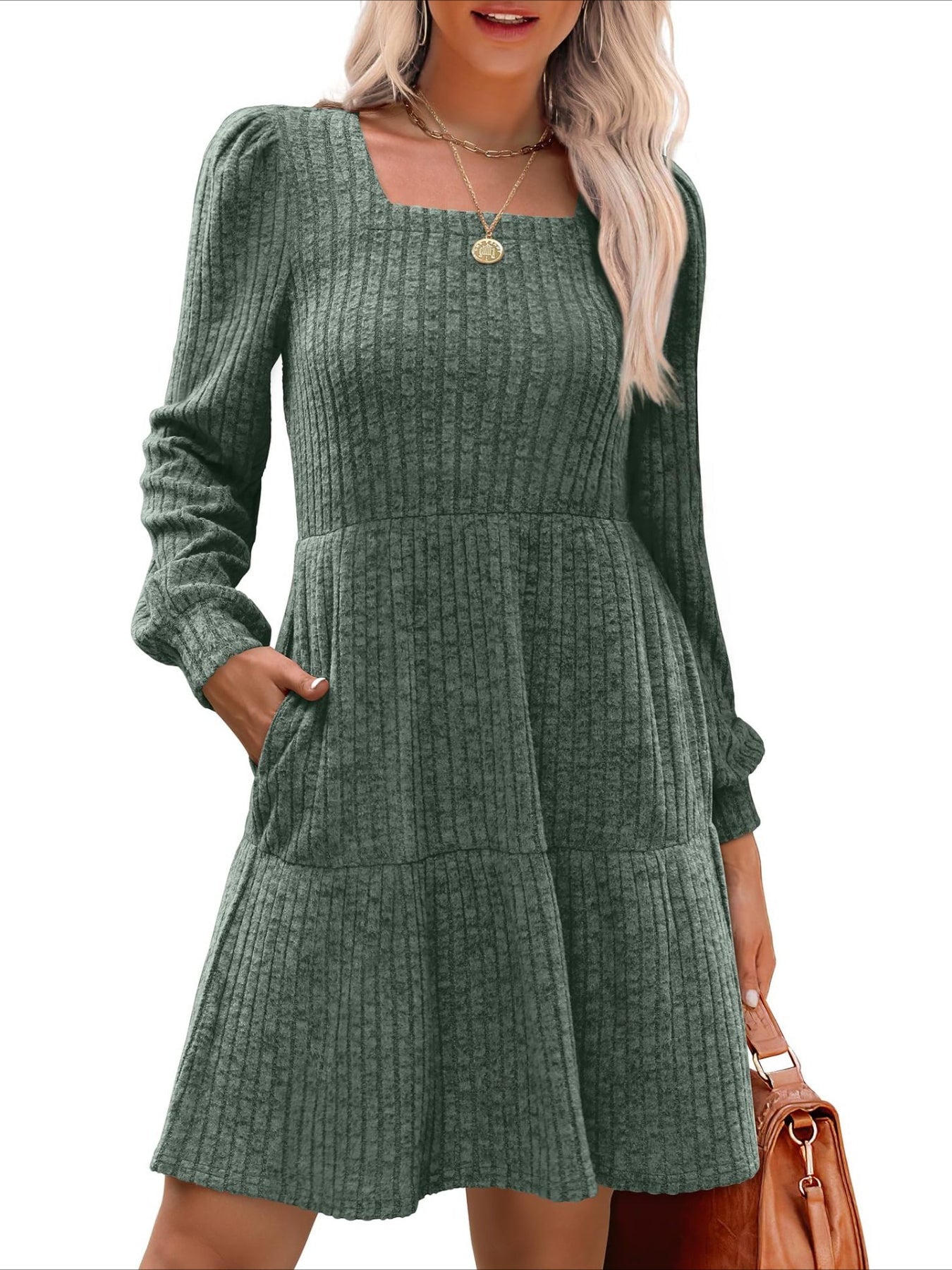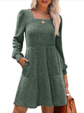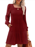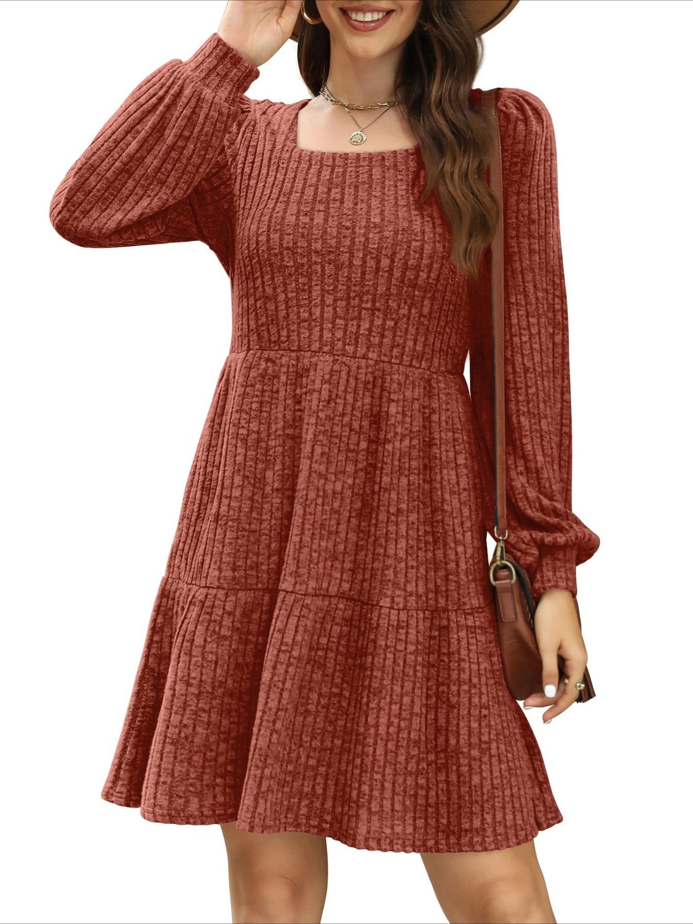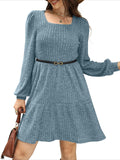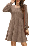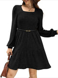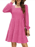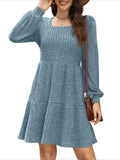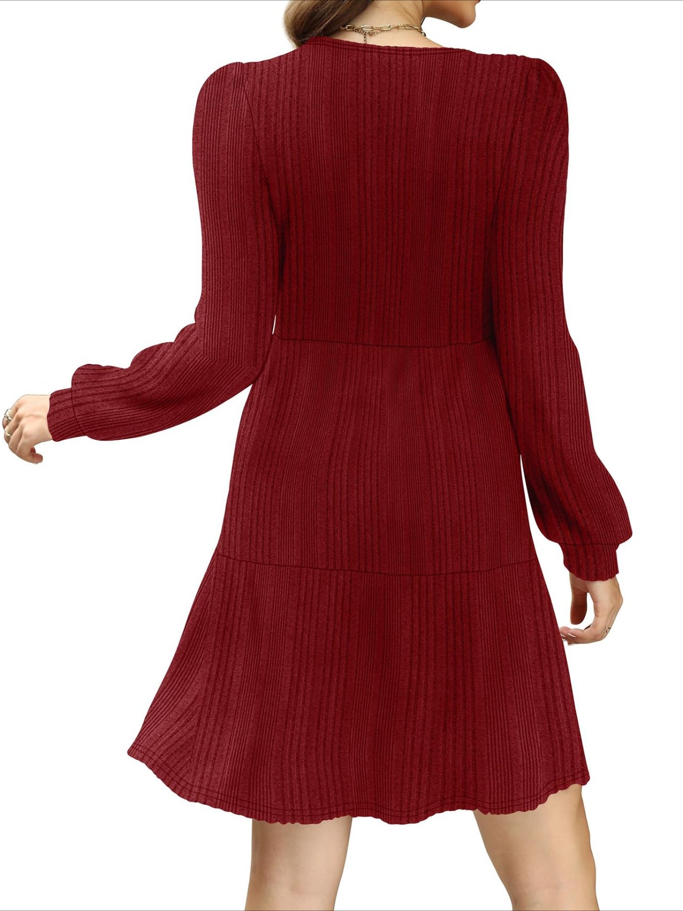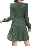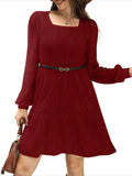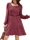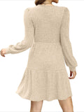 Sale Elegant Round Neck Flared Hem Long Sleeves Tiered Midi Dress