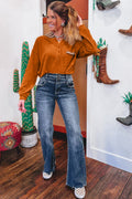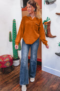 Solid Color Swinging Neck Long Sleeve Sexy Velvet T-shirt