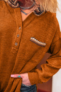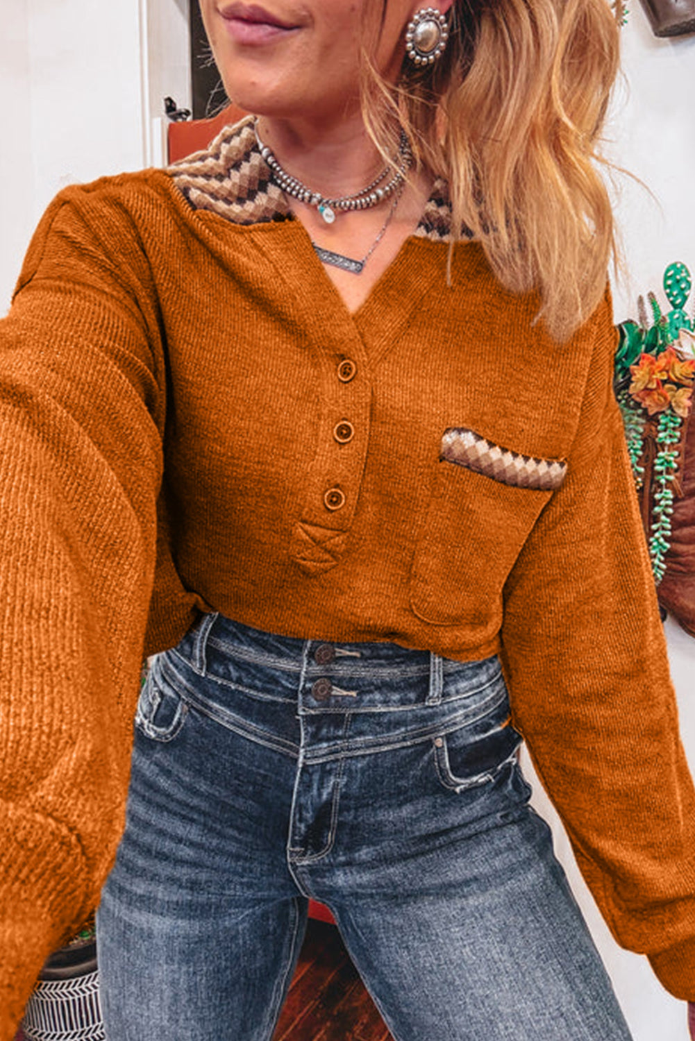 Straw Yellow Contrast Plaid Hood Patchwork Chest Pocket Henley Top