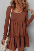 - Ribbed knit fabric adds textured appeal and visual interest to the dress.Adorned with delicate frilled trim for a feminine touch.High waist design creates a flattering silhouette.Long sleeves provide coverage while remaining stylish.