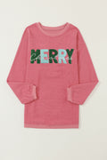 Strawberry Pink MERRY Christmas Chenille Embroidered Corded Sweatshirt