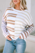 Stripe Blocked Drop Shoulder Slouchy Sweater