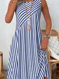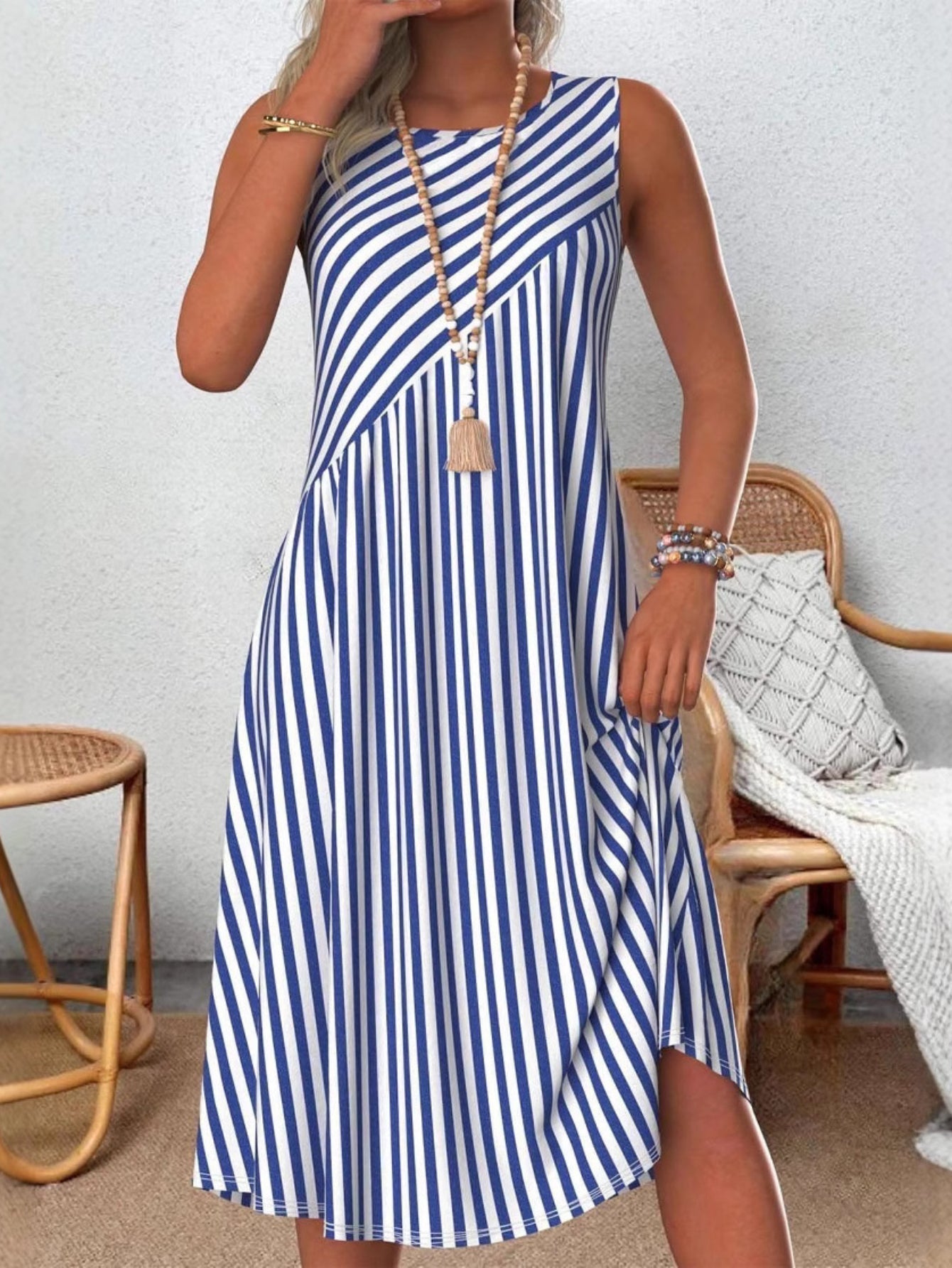 Striped Crew Neck Sleeveless Comfy Casual Midi Dress