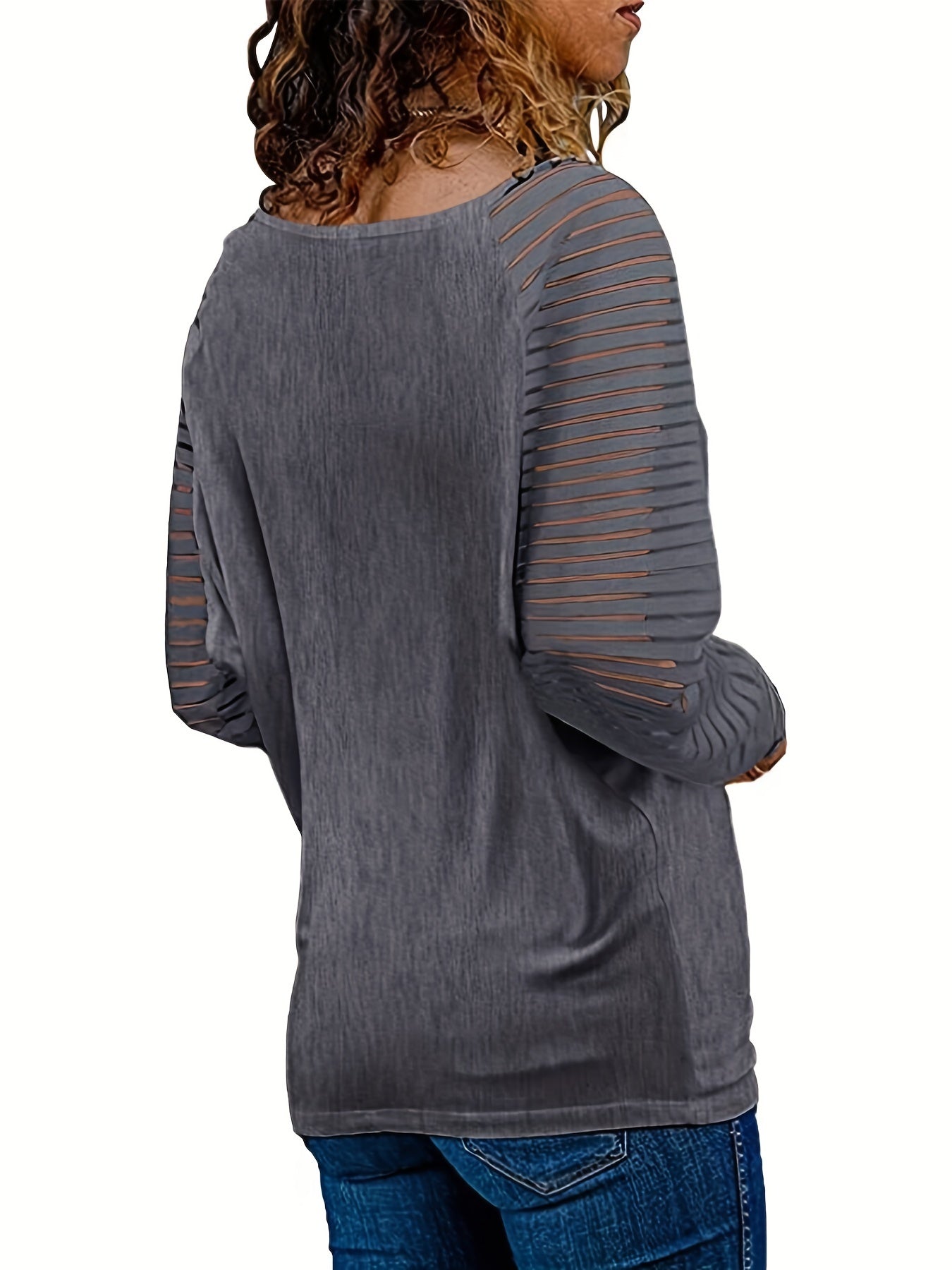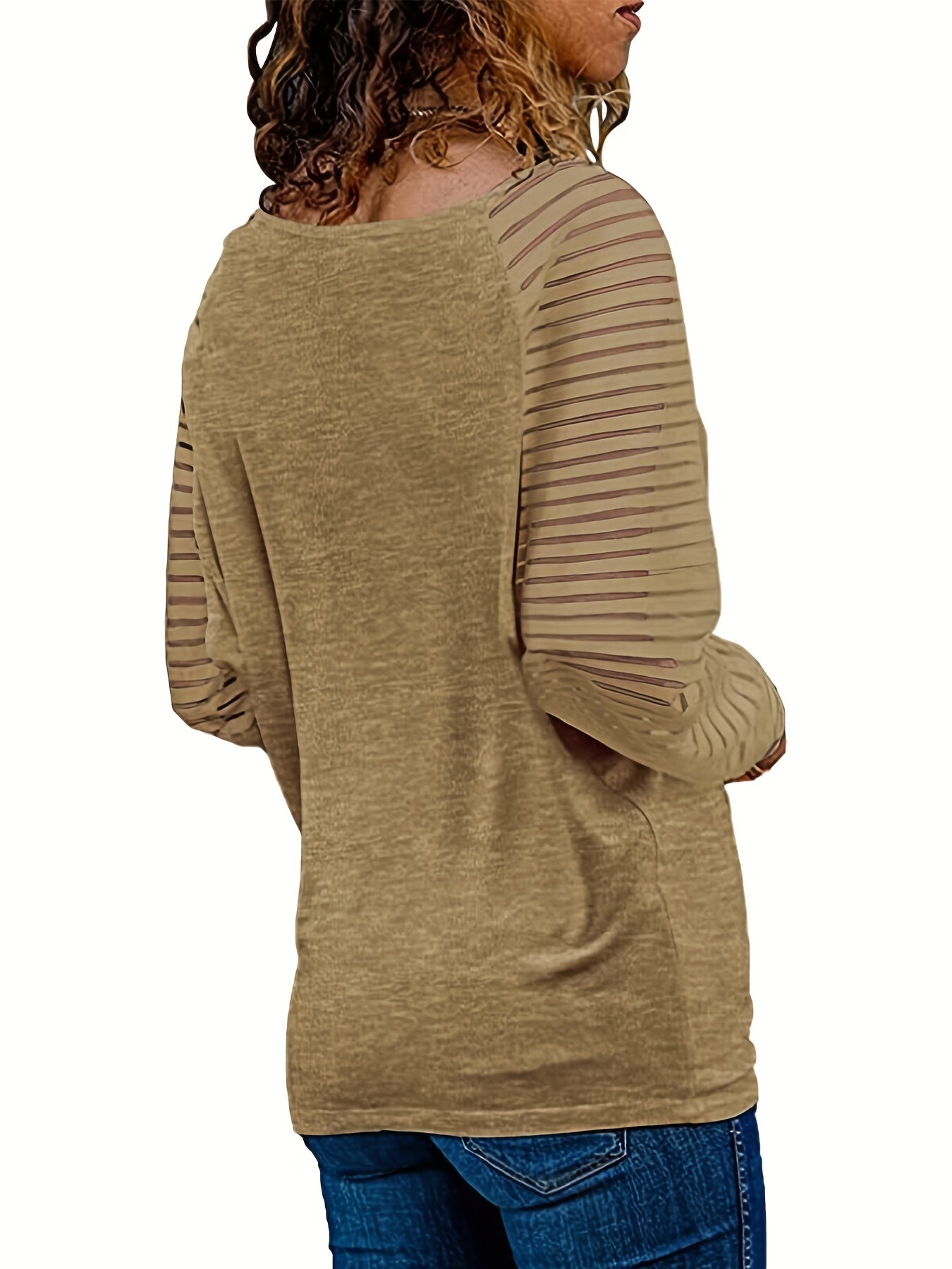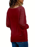 Sale Striped Botton Crew Neck T-Shirt, Elegant Long Sleeve T-Shirt