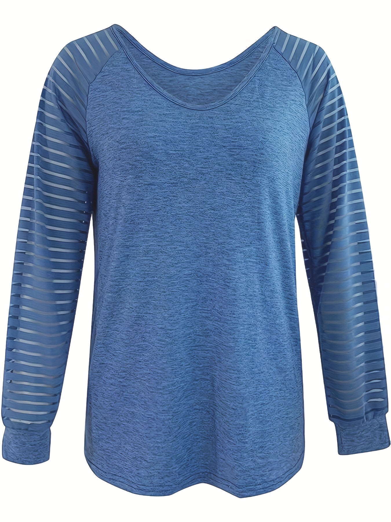 Sale Color Block Crew Neck T-shirt, Casual Long Sleeve Top