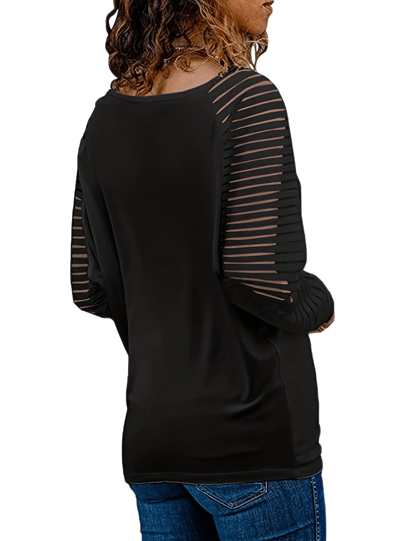 Black Rhinestone Sheer Mesh Slim Fit Long Sleeve Top