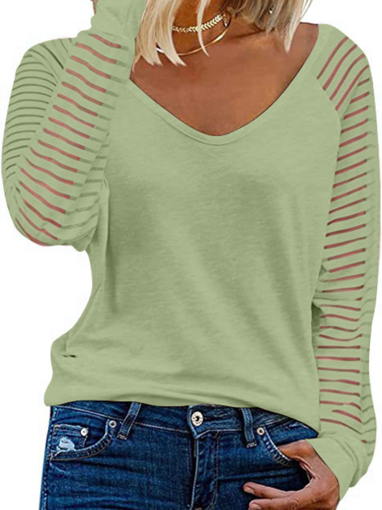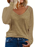 Sale Striped Print Long Sleeve T-Shirt, Casual V Neck T-Shirt