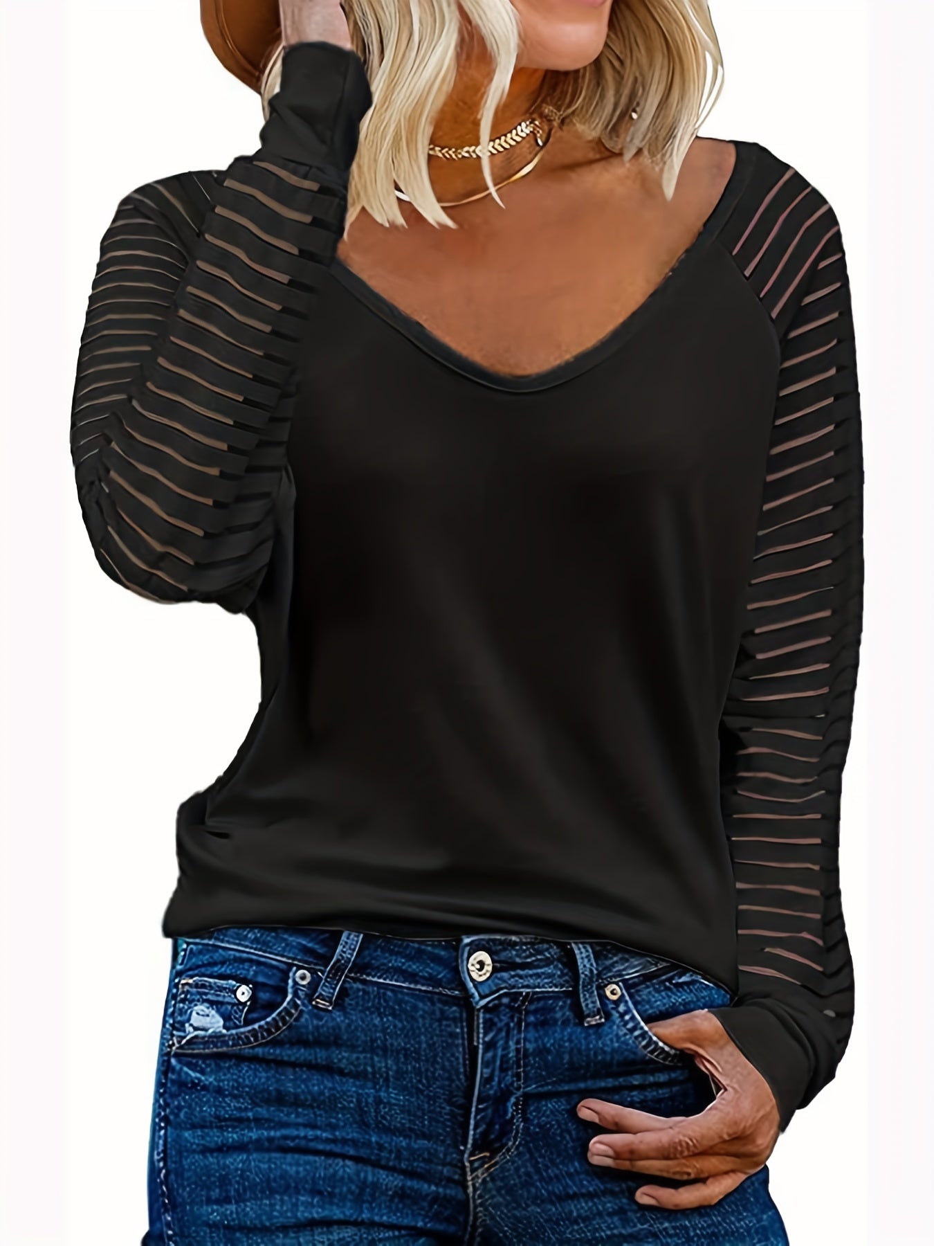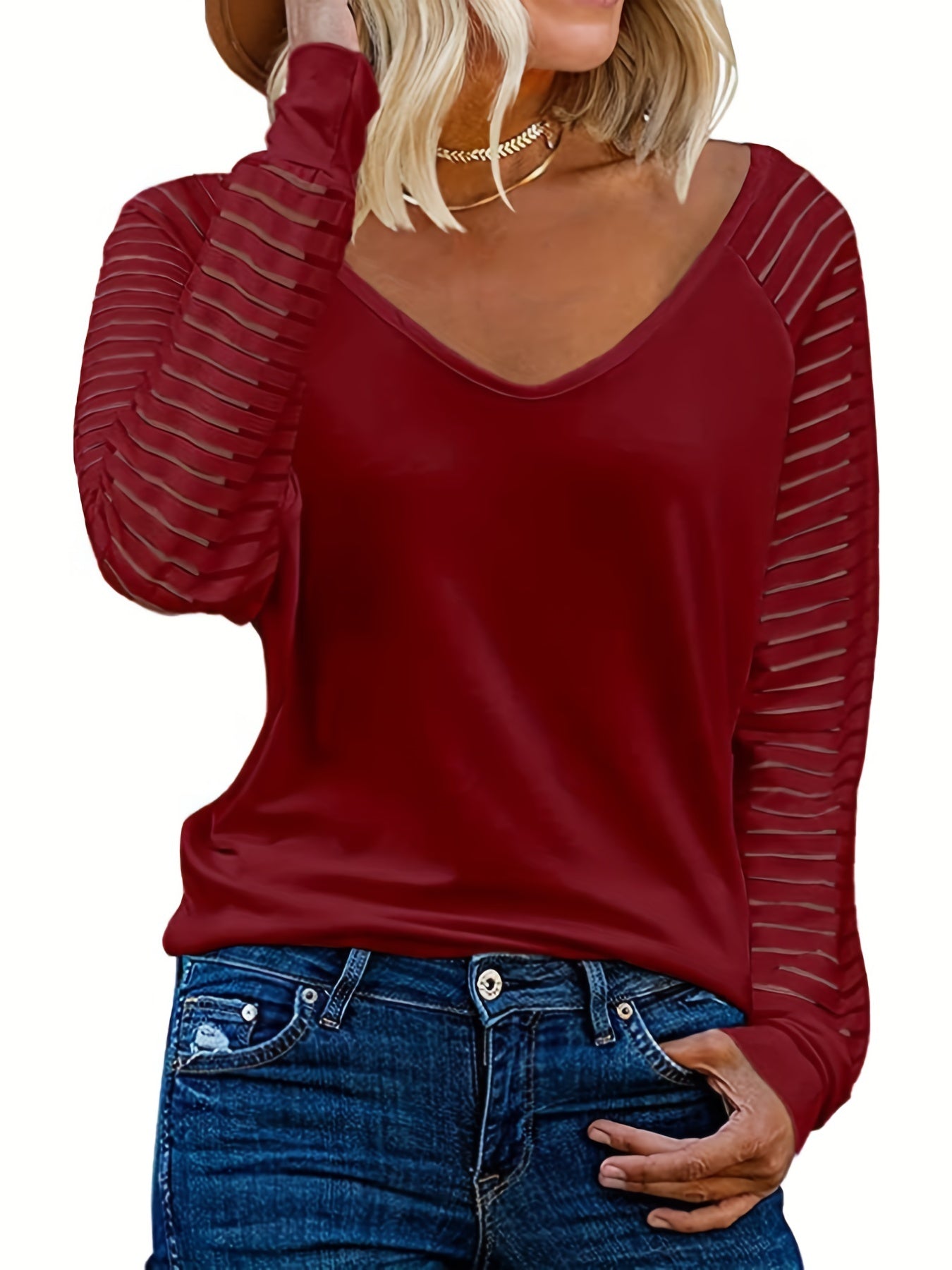 Sale V Neck Long Sleeve Geometric Regular Micro-Elasticity Regular Fit Blouse
