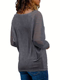 Sale Solid Simple Knit Sweater, Casual Crew Neck 3/4 Sleeve Sweater