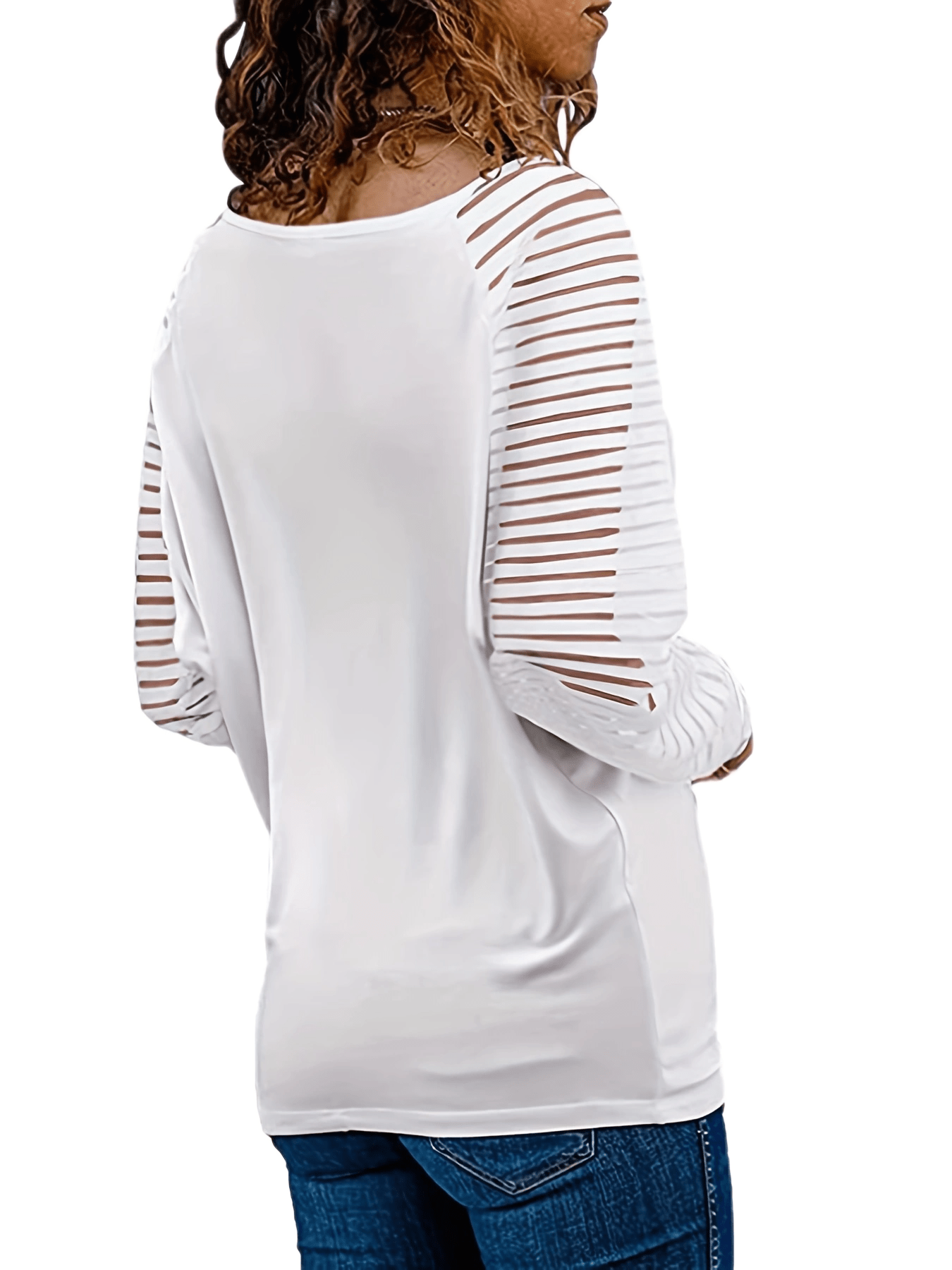 Sale Casual Contrast Lace Round Neck Long Sleeve T-Shirt