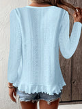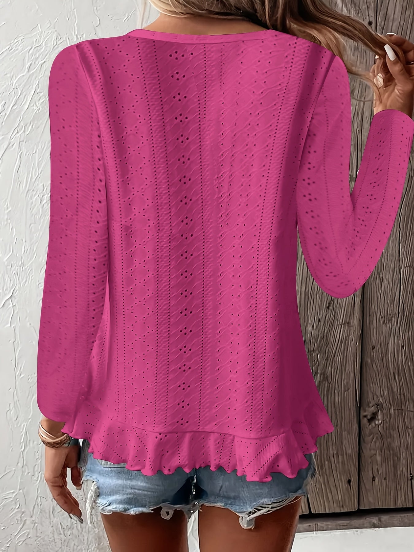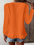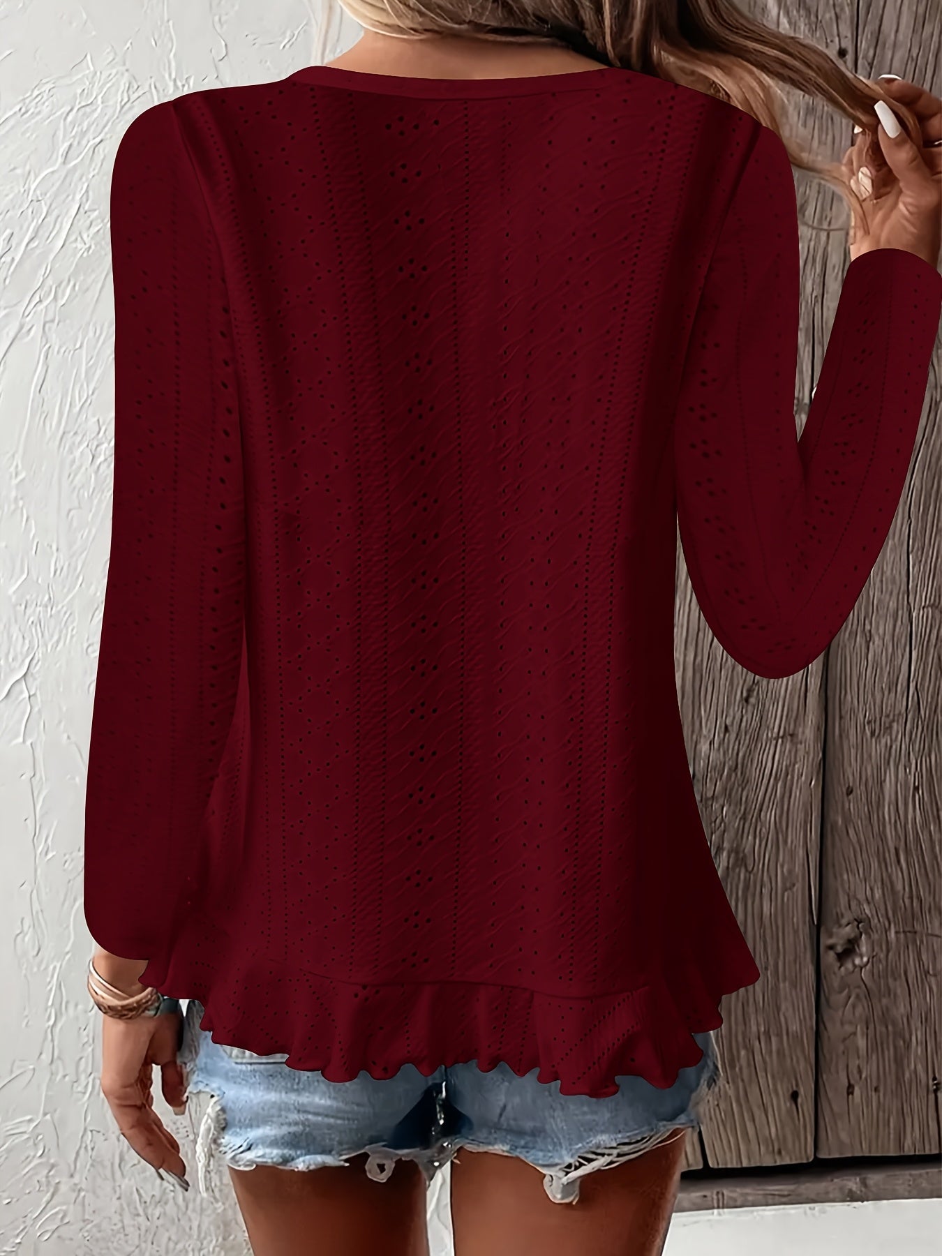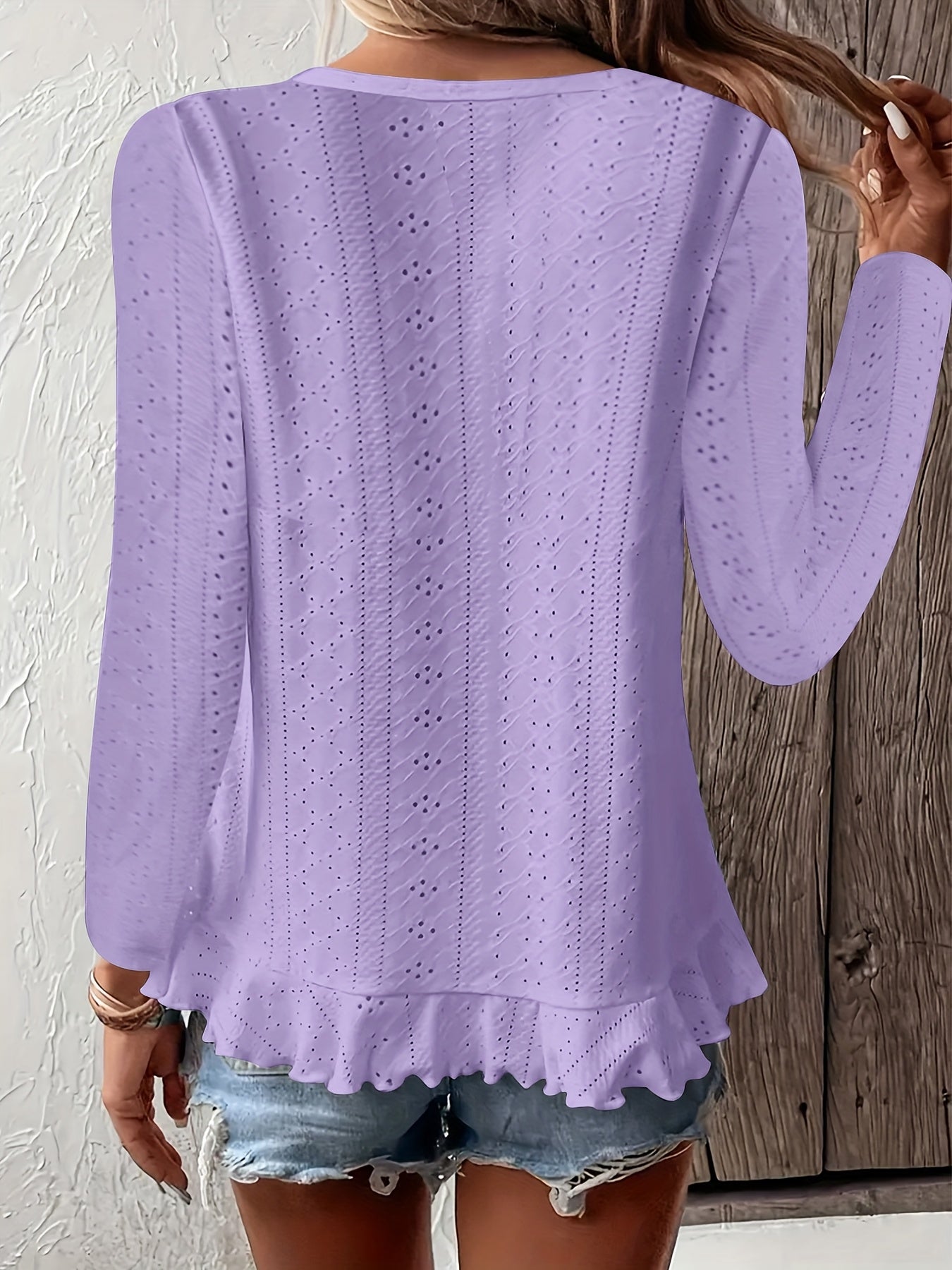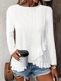 Stylish Asymmetrical Ruffle Hem Long Sleeve Top - Elegant Embroidered Solid Clothing