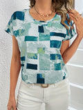 Stylish Geometric Print Blouse - Comfortable Crew Neck Short Sleeve Top