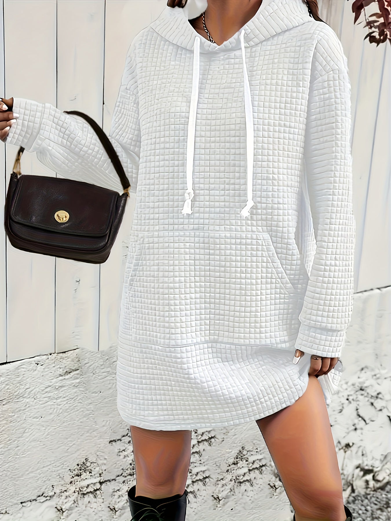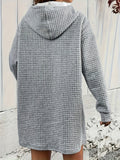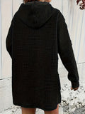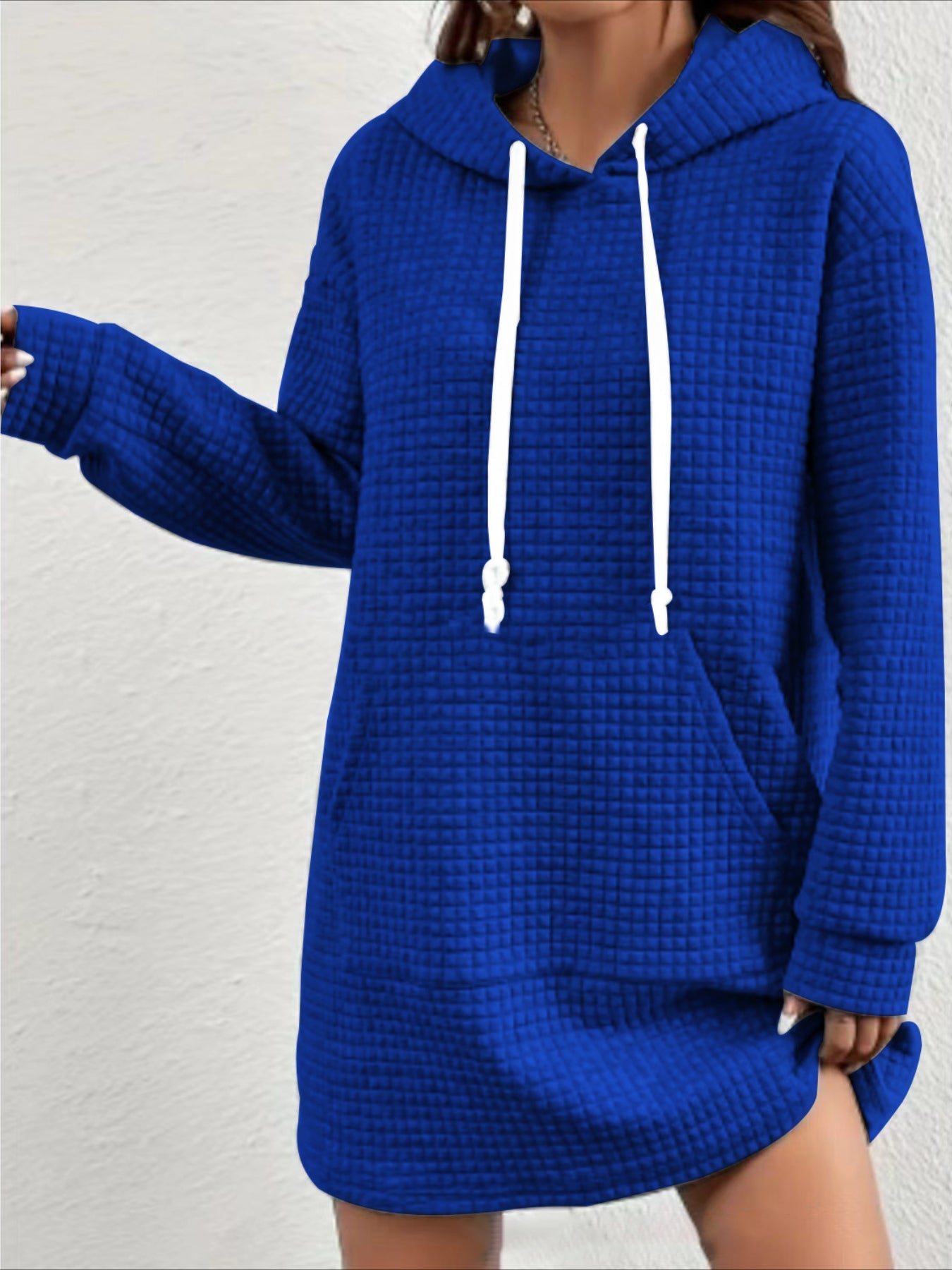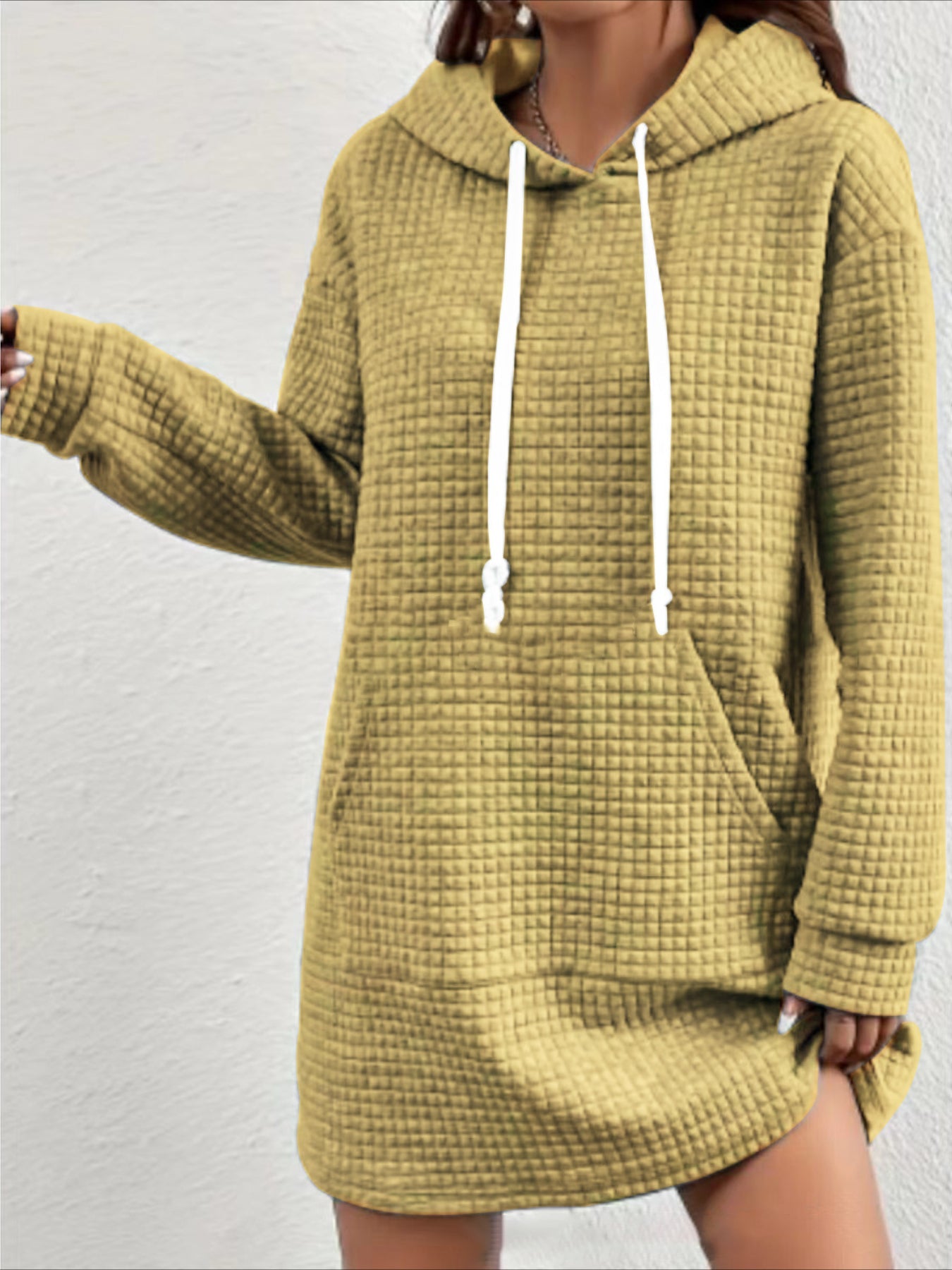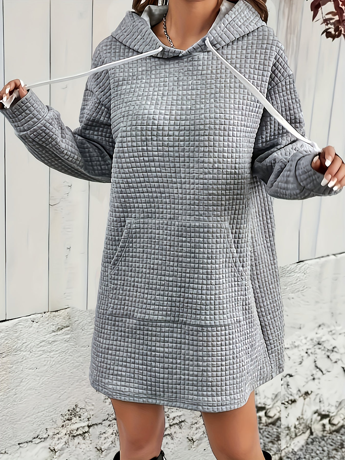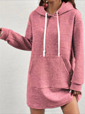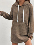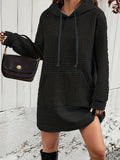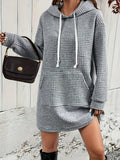 Stylish Textured Drawstring Dress - Comfy Hooded Long Sleeve with Kangaroo Pocket