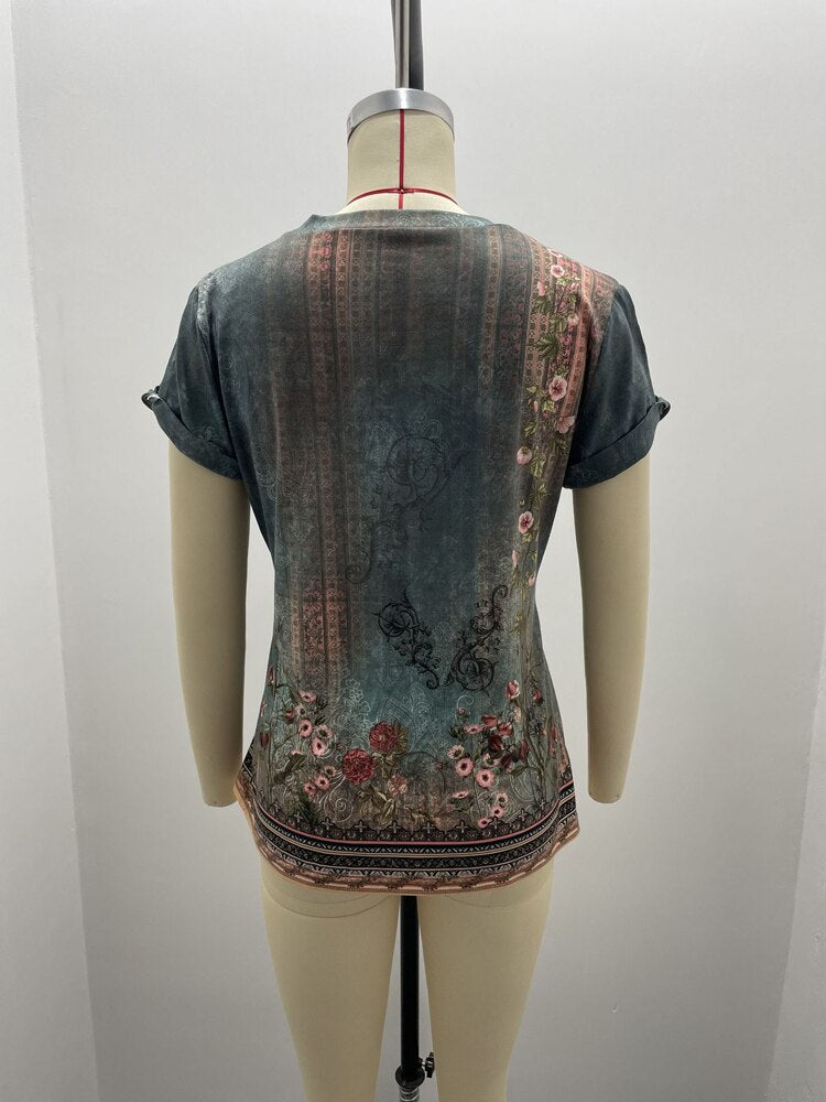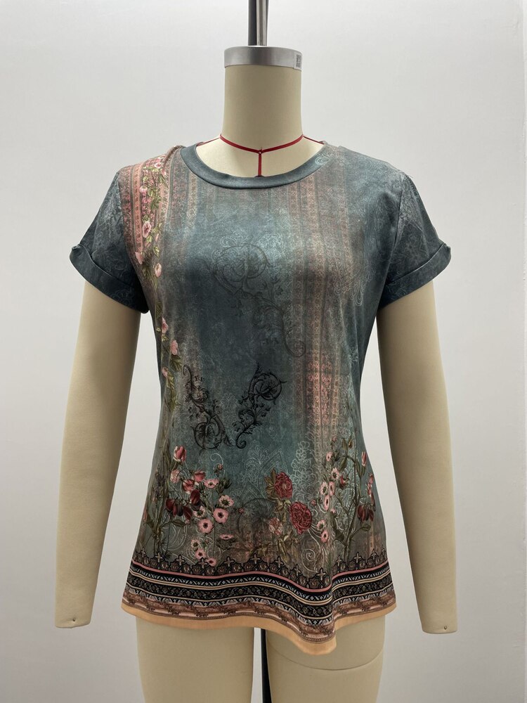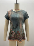 Vintage Artistic Print O Neck Pullover Short Sleeve T-Shirt