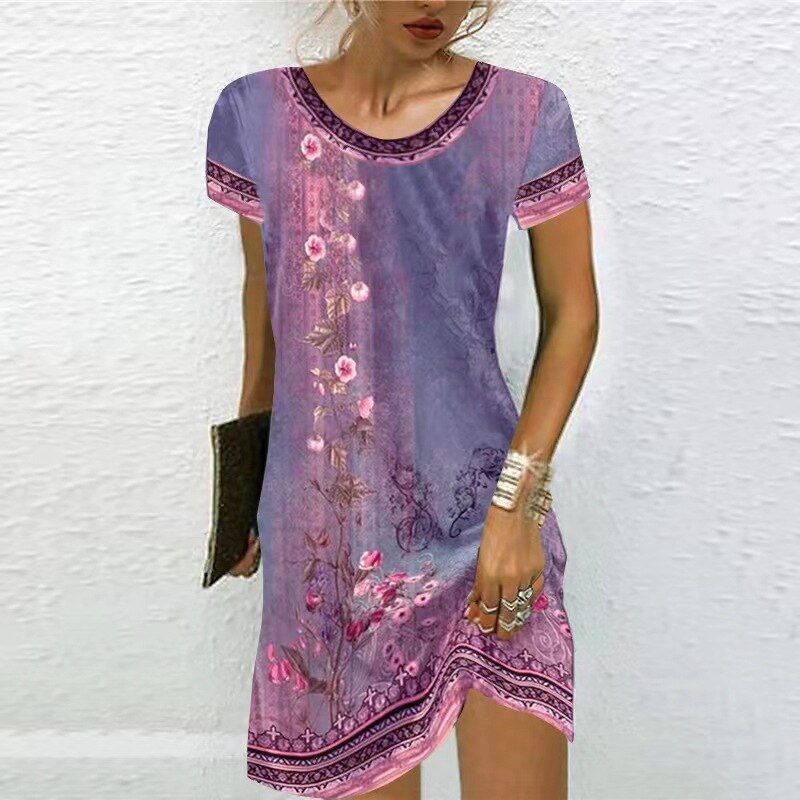 Sale Printed Short Sleeve Round Neck Elegant Vintage Pullover Boho Flower Midi Dress