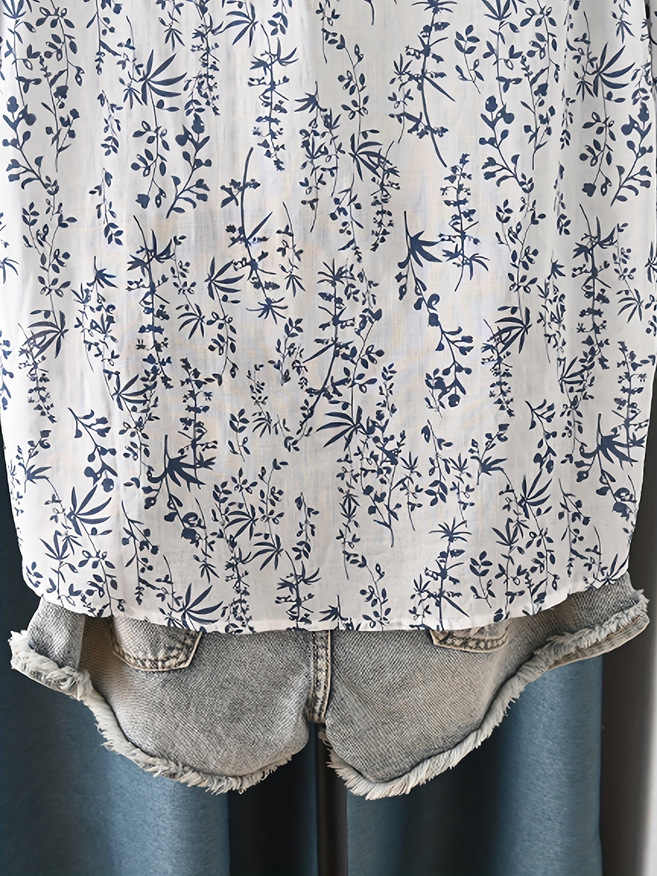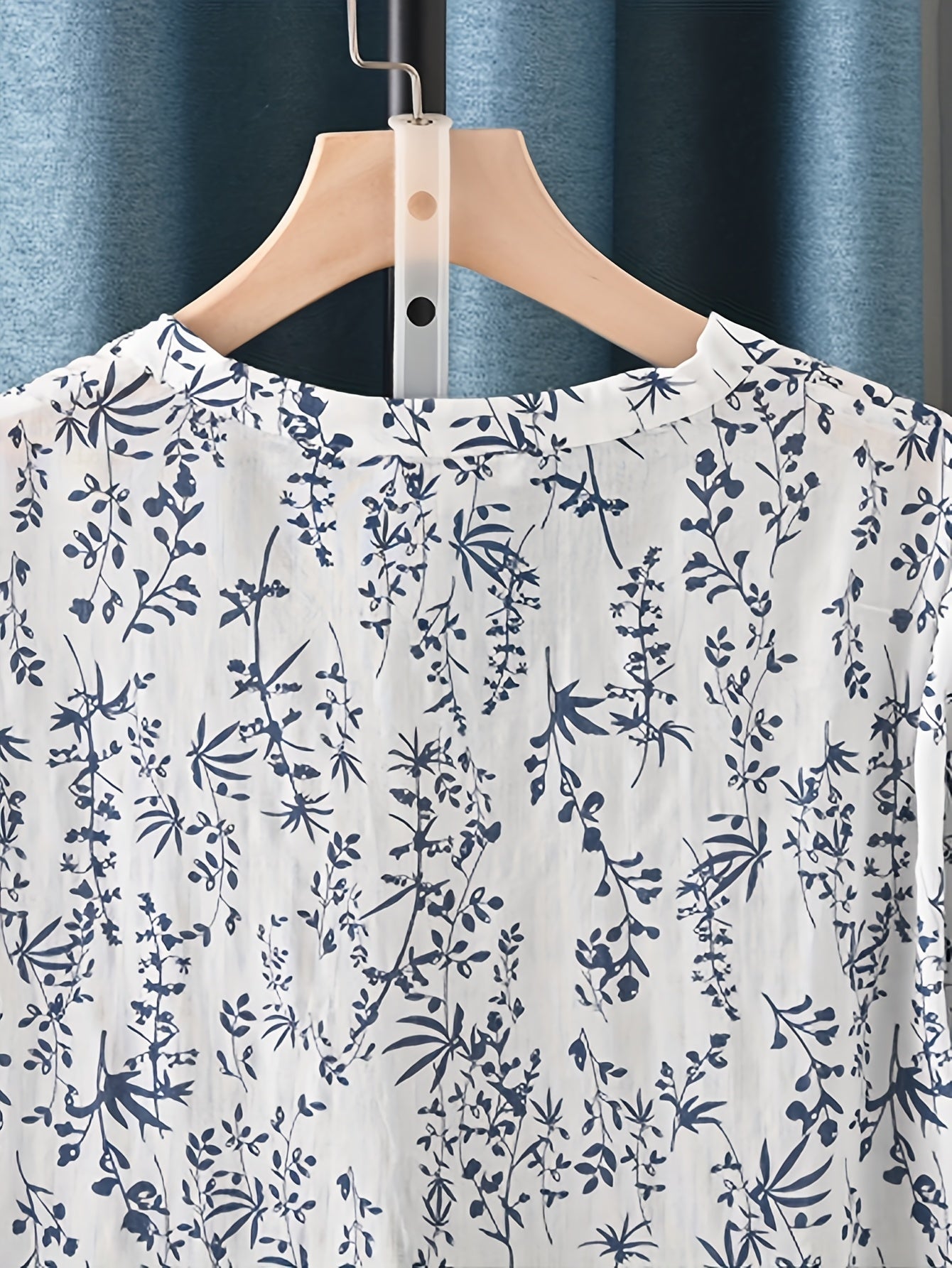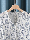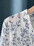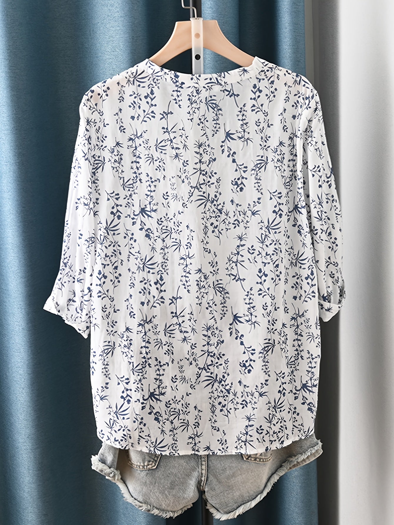 Floral V-neck Lightweight Seven Quarter Sleeved Shirt